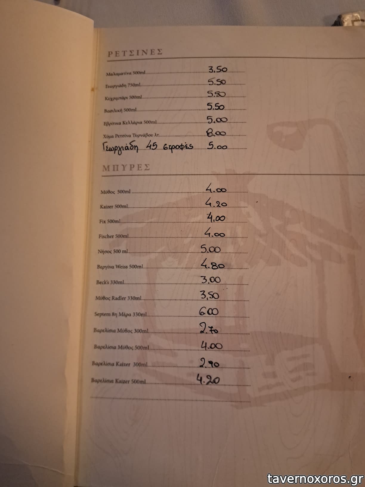 εχει μπυρα χυμα καϊζερ και μυθος.