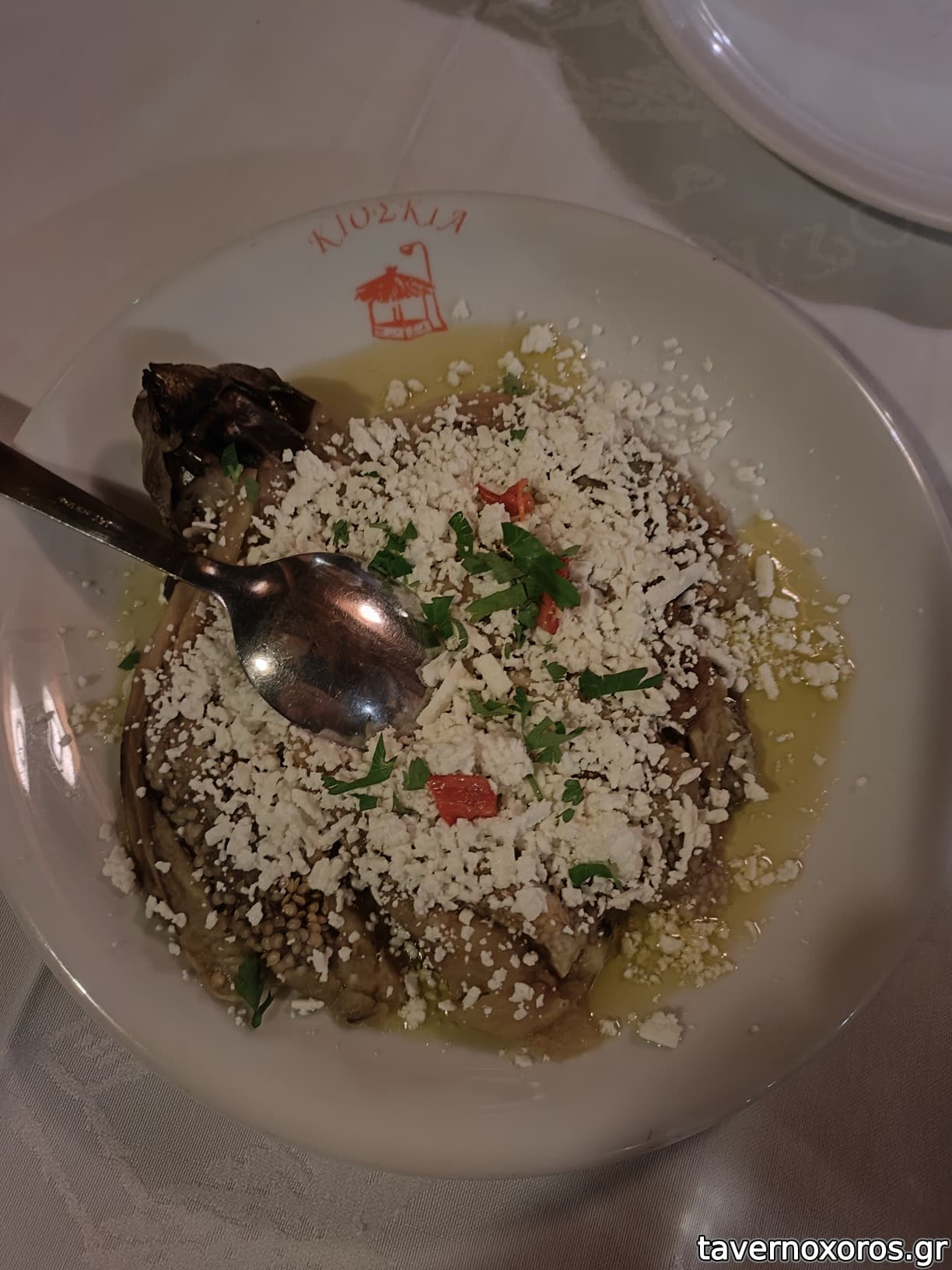 6-Ψητή μελιτζάνα , ολόκληρη , πολύ καλή σε γεύση και μερίδα.