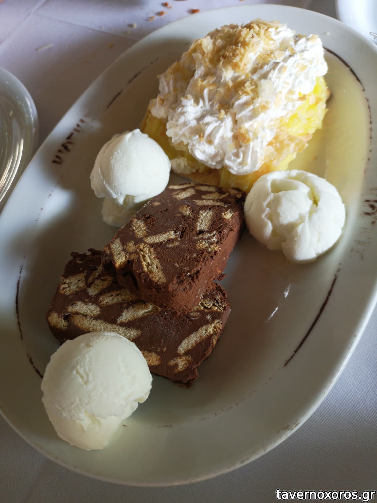 Στο τελος ωραιο γλυκακι, παγωτο, με σαντυγι, κορμος και πορτοκαλοπιτα (πατσαβουροπιτα).