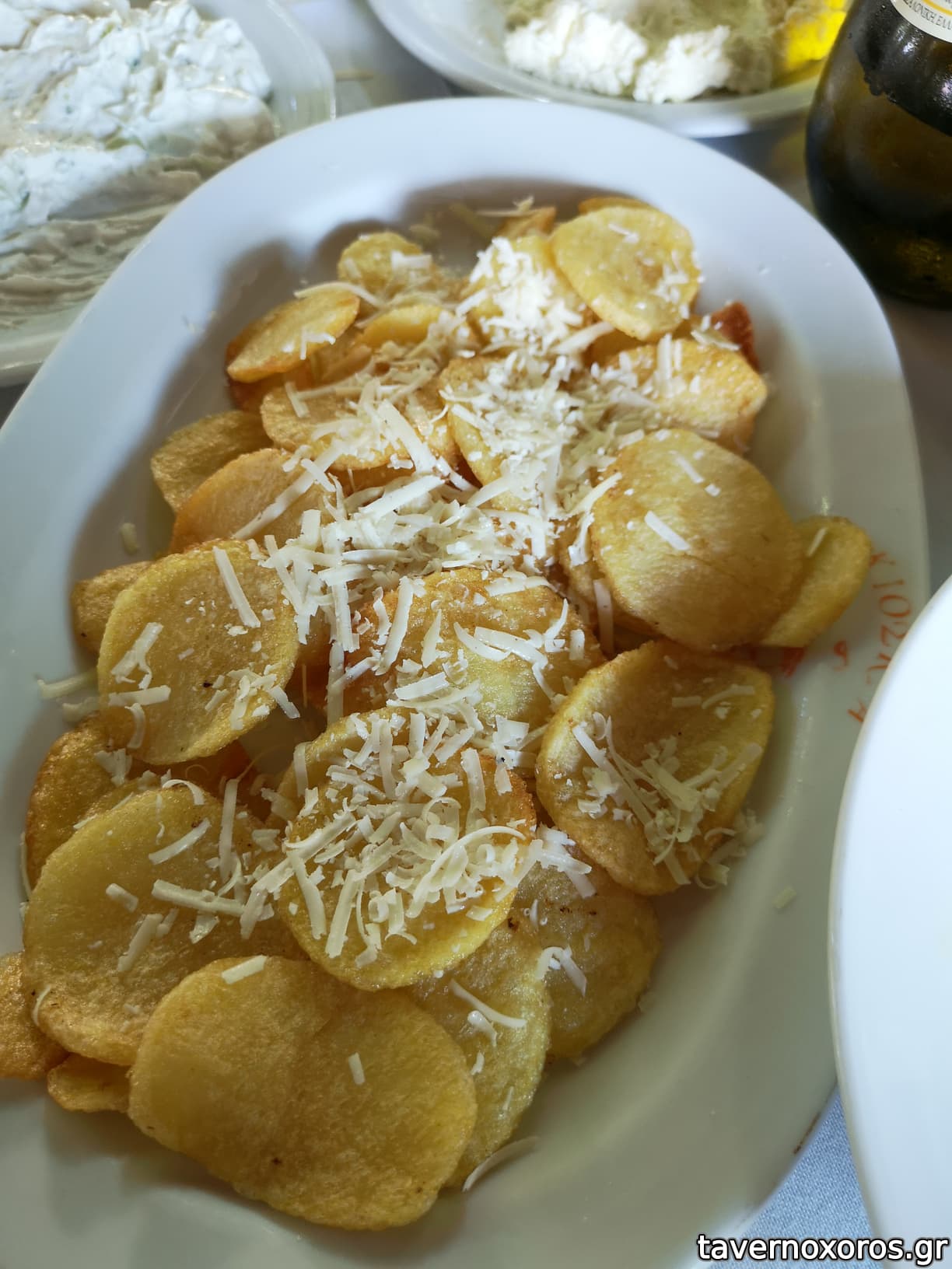 - Πατάτες τηγανητές, πολύ καλές. Σπιτικές, κομμένες ροδέλα, συνοδεύονται με τριμμένο τυρί.
