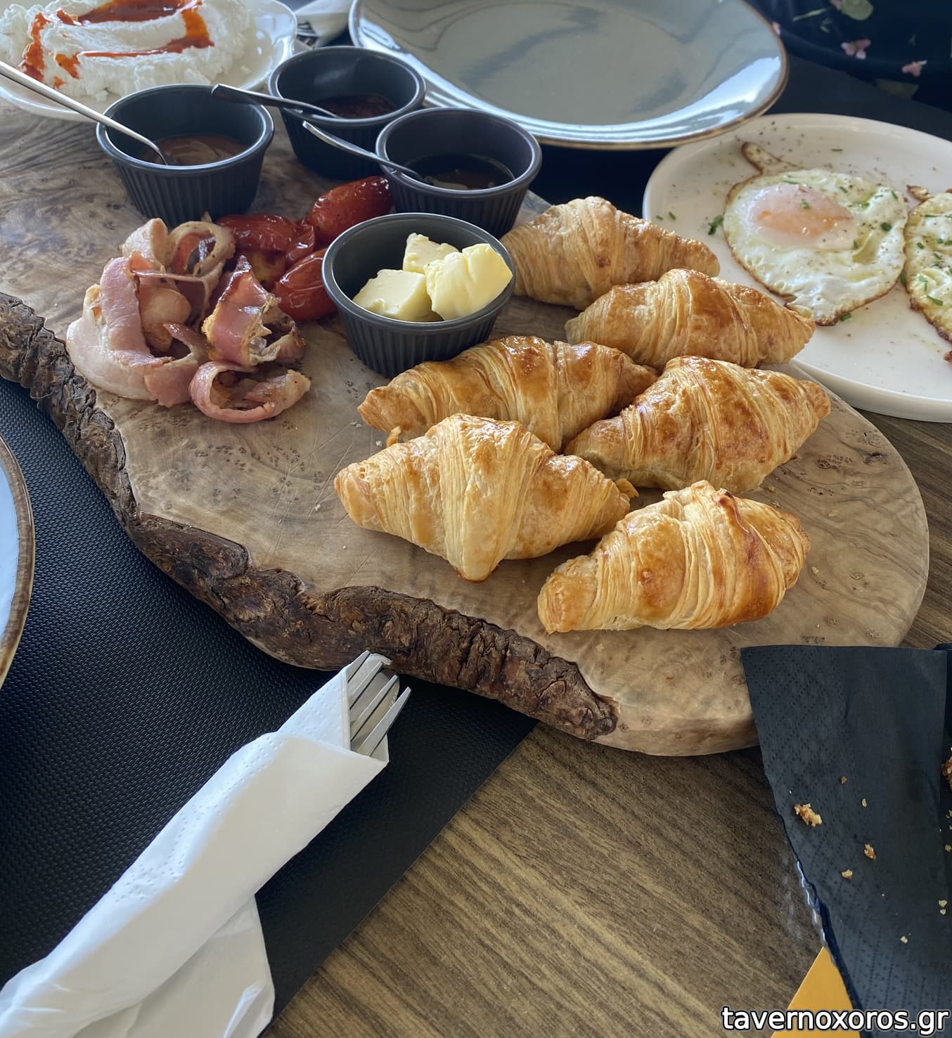 Le petit dejeuner (καλό, με αυγά μάτια, κρουασάν, ψωμί, μπέικον, τοματίνια, βούτυρο, μέλι, πραλίνα, μαρμελάδα, κατίκι, 11€)