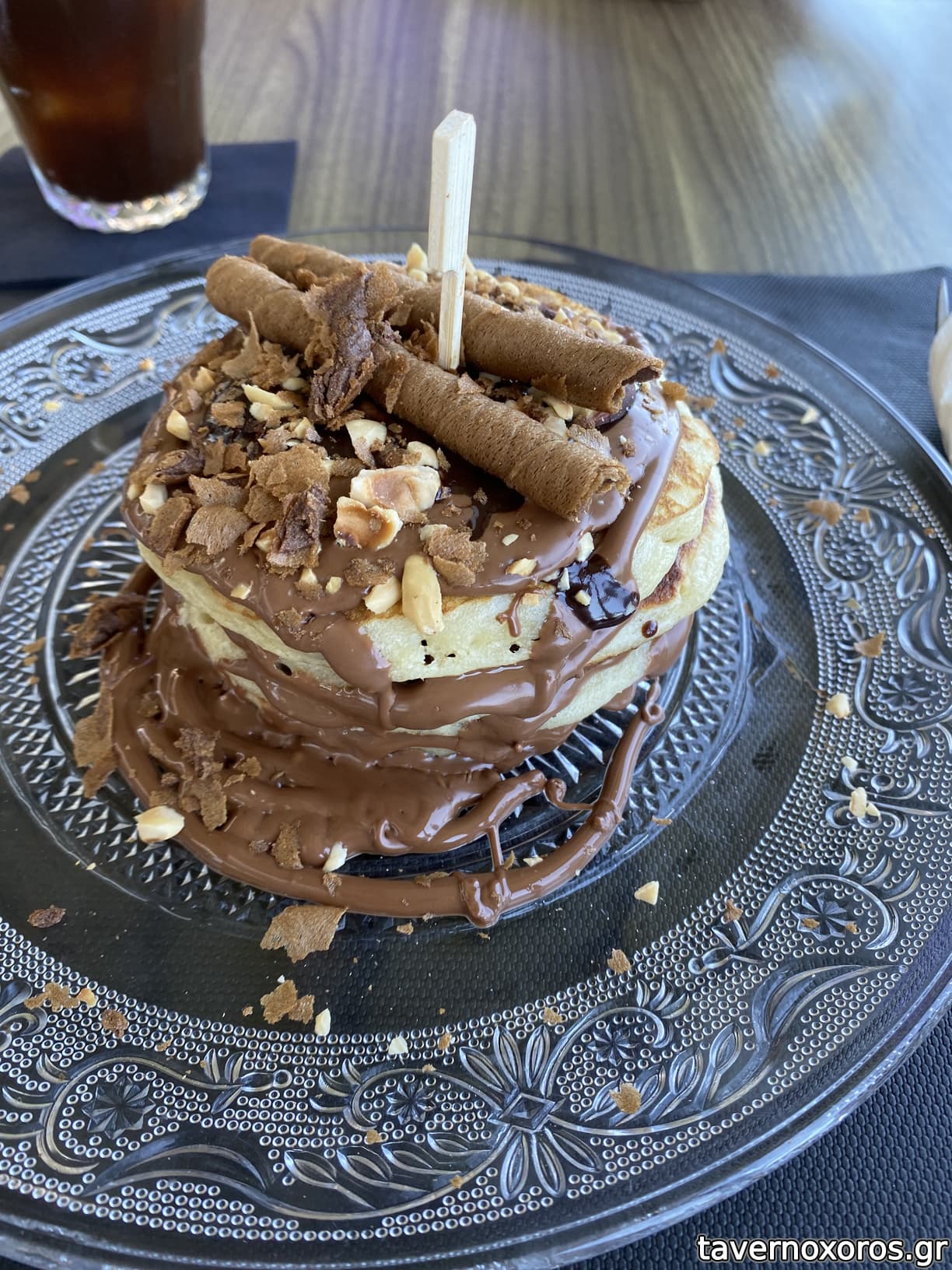 Πάνκεϊκς με πραλίνα και φουντούκια (οκ, μικρή μερίδα, 8€)