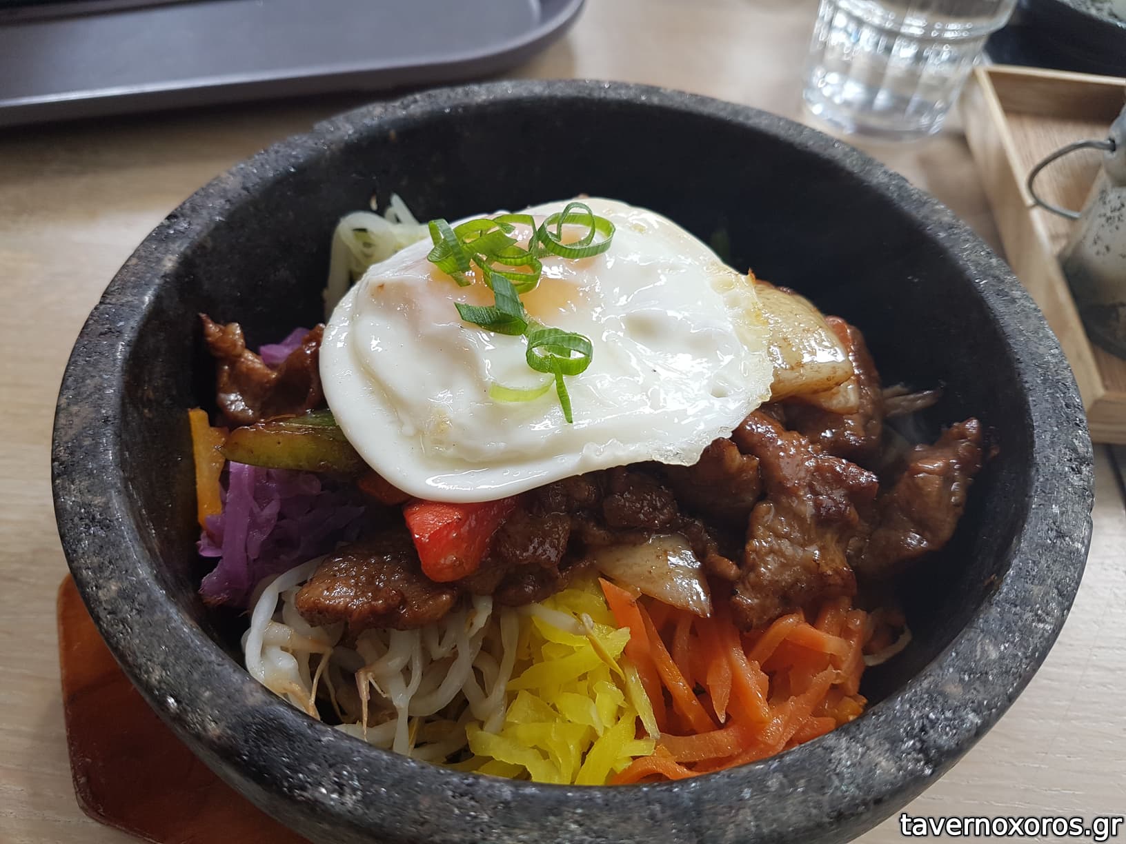Λαχανικά και αρνί με ρύζι σε ζεστό πέτρινο σκεύος (πολύ καλό)