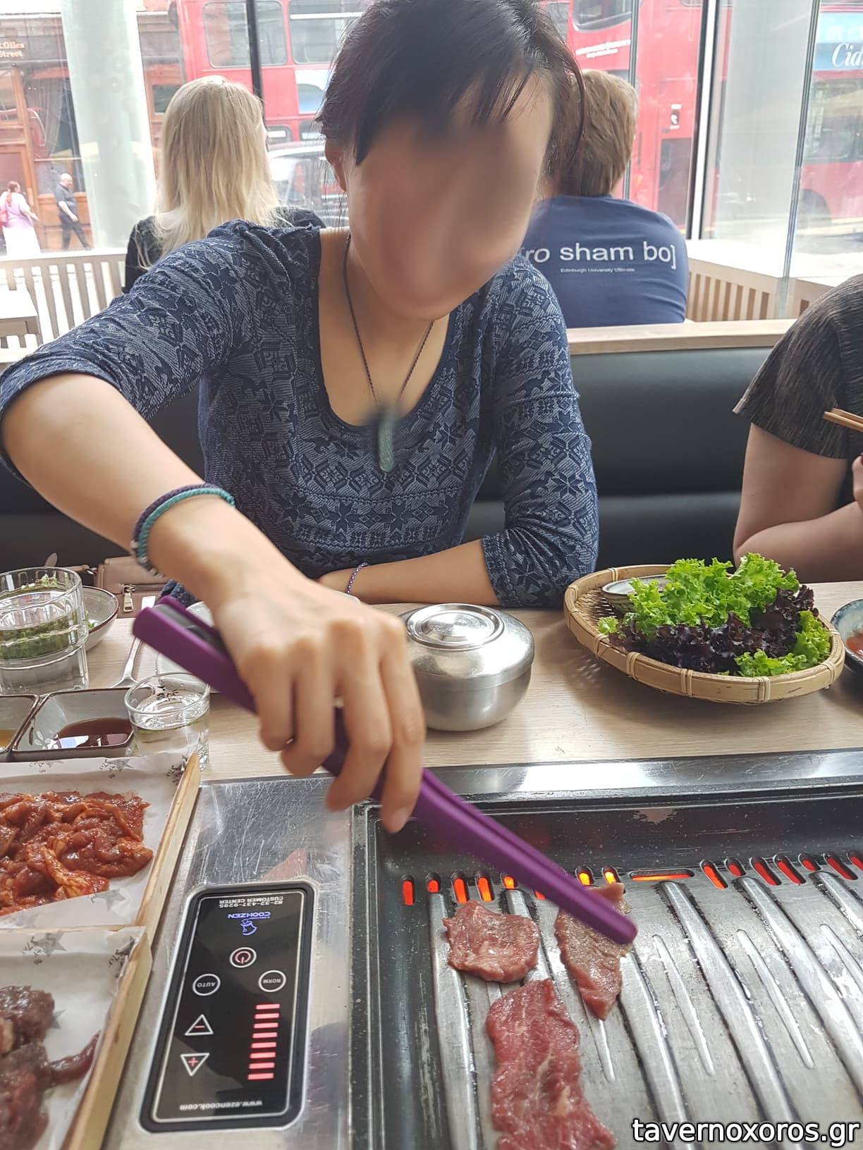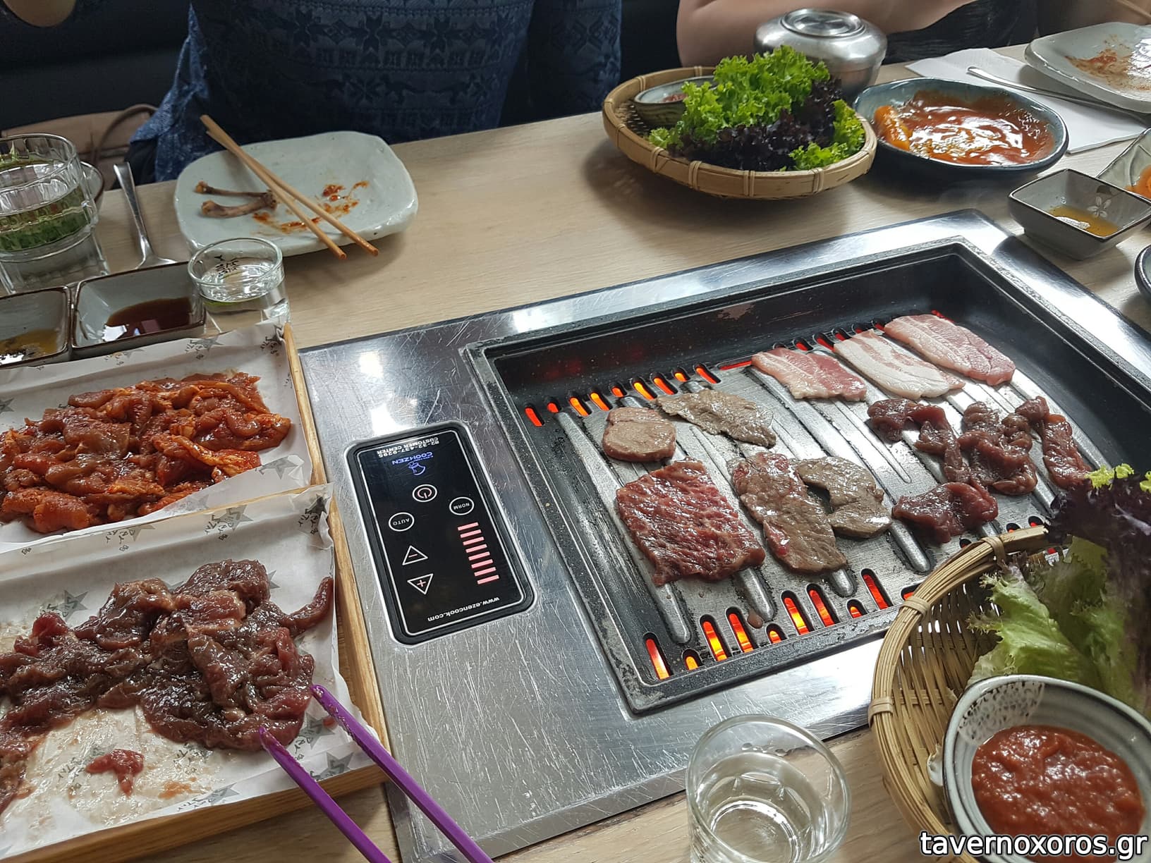 Το φαγητό του δεν με τρέλανε, και επιβεβαιώθηκα από ασιάτισσα της παρεας πώς είναι πολύ εξευρωπαισμένο το menu. Επιπλέον, ο χώρος δεν έχει σωστό εξαερισμό με αποτέλεσμα όλη η τσίκνα από τα κρέατα και τα κρεμμύδια που ψήνονται σε κάθε τραπέζι, διαχέεται στον χώροκαι στα ρούχα/μαλλιά σου.