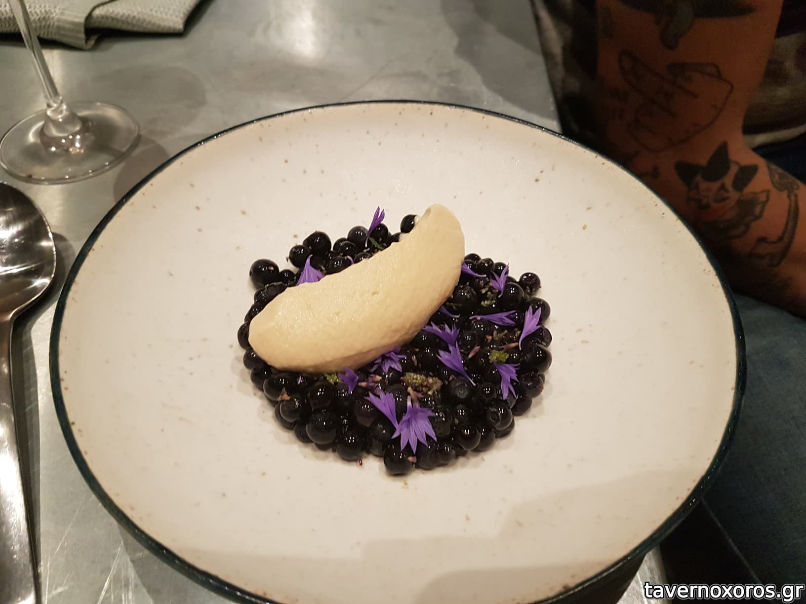 Wild blueberries with spices and a cream seasoned with toasted seaweed and ale