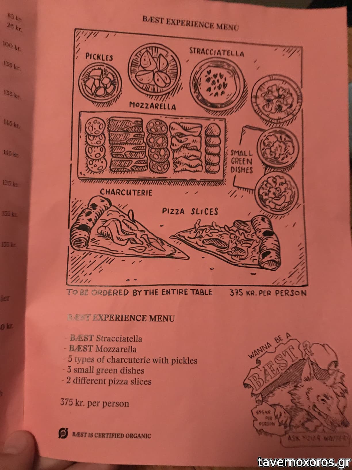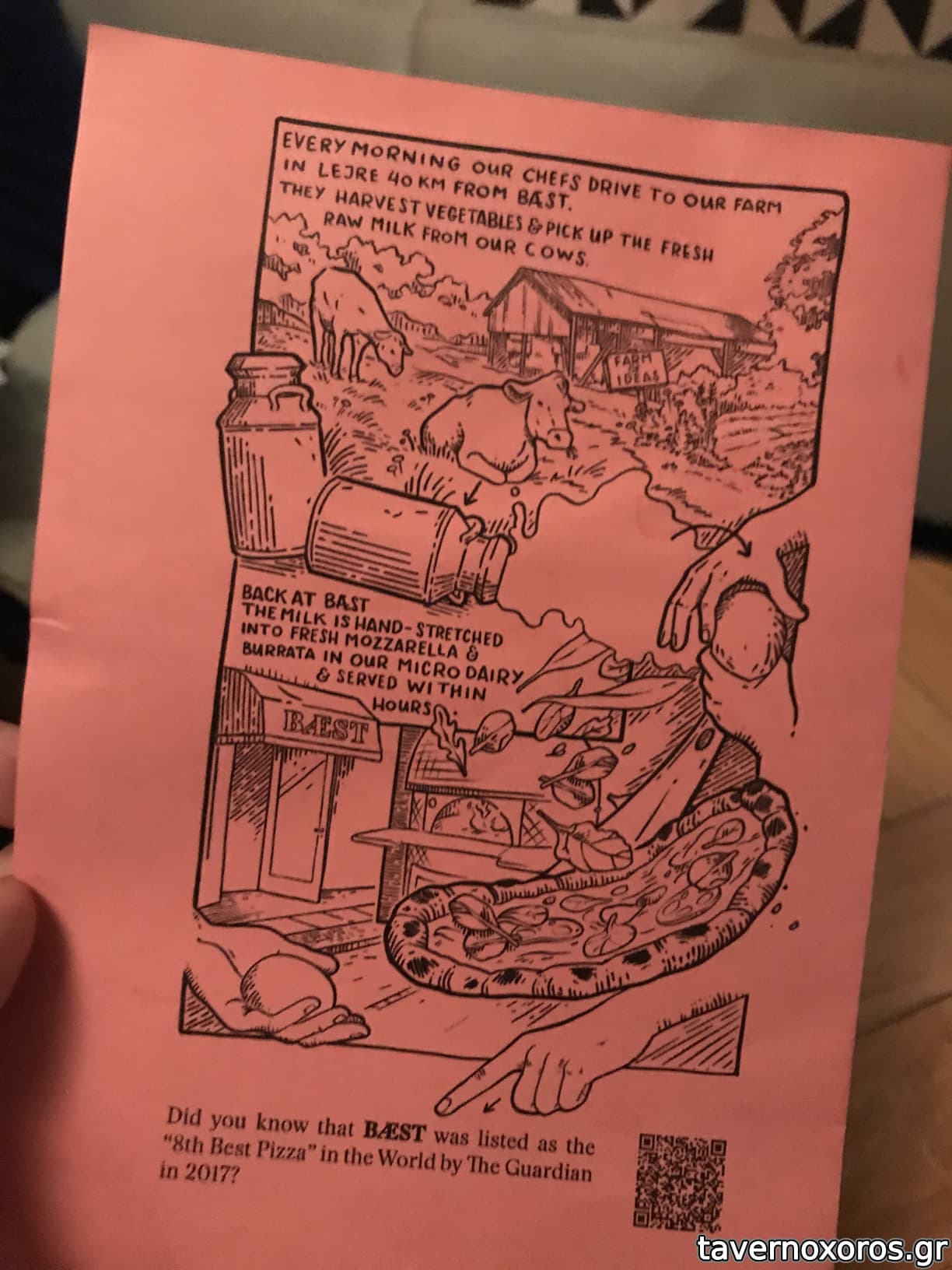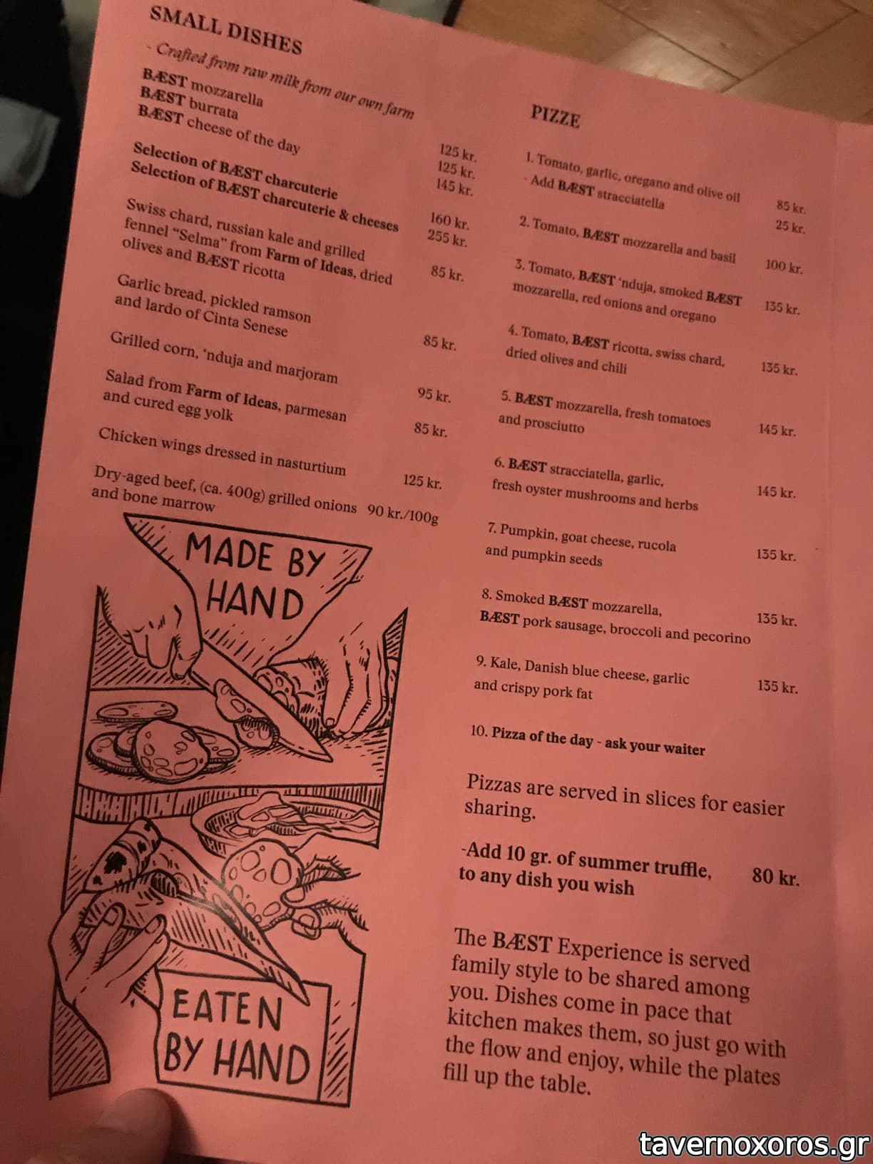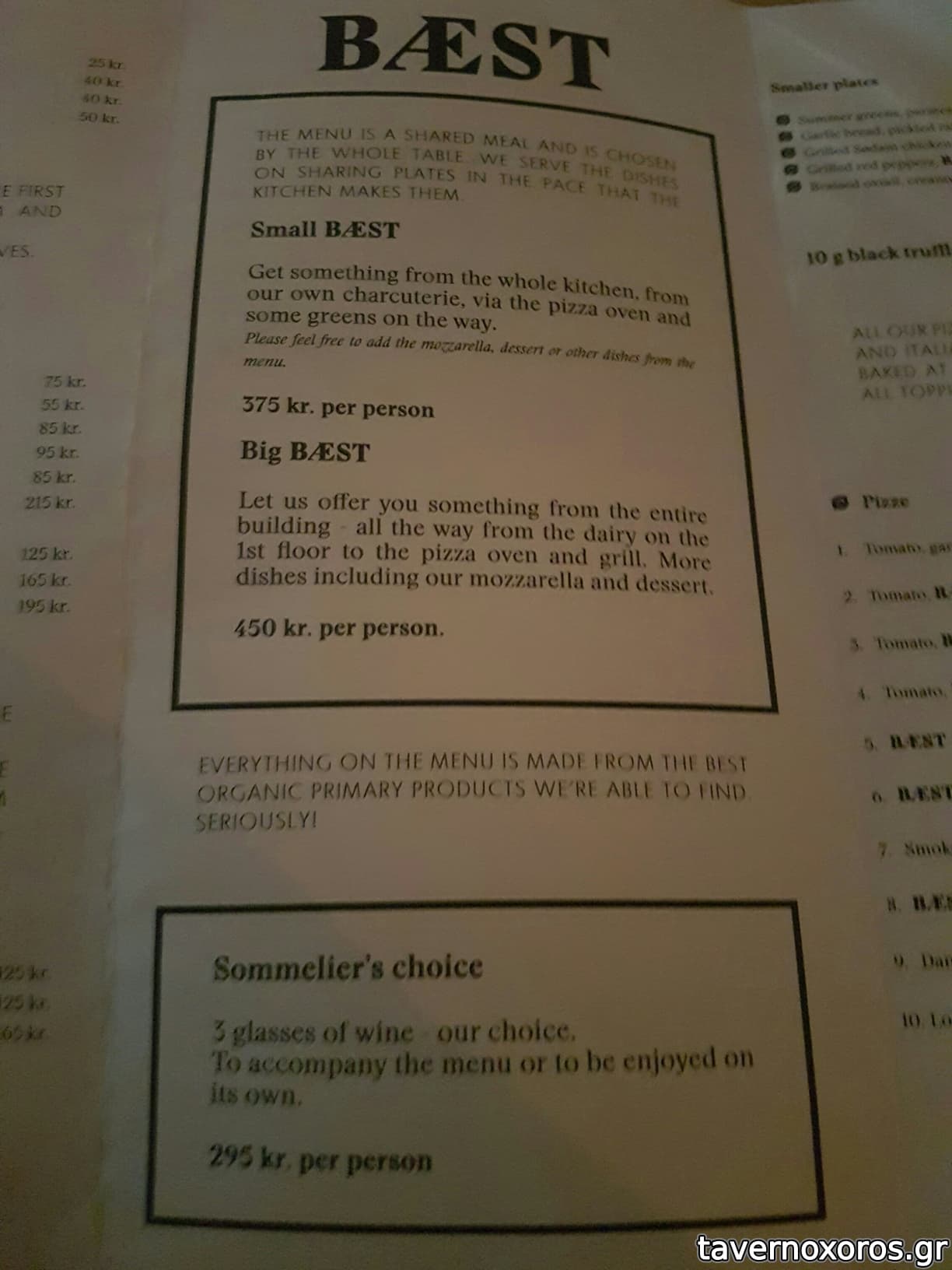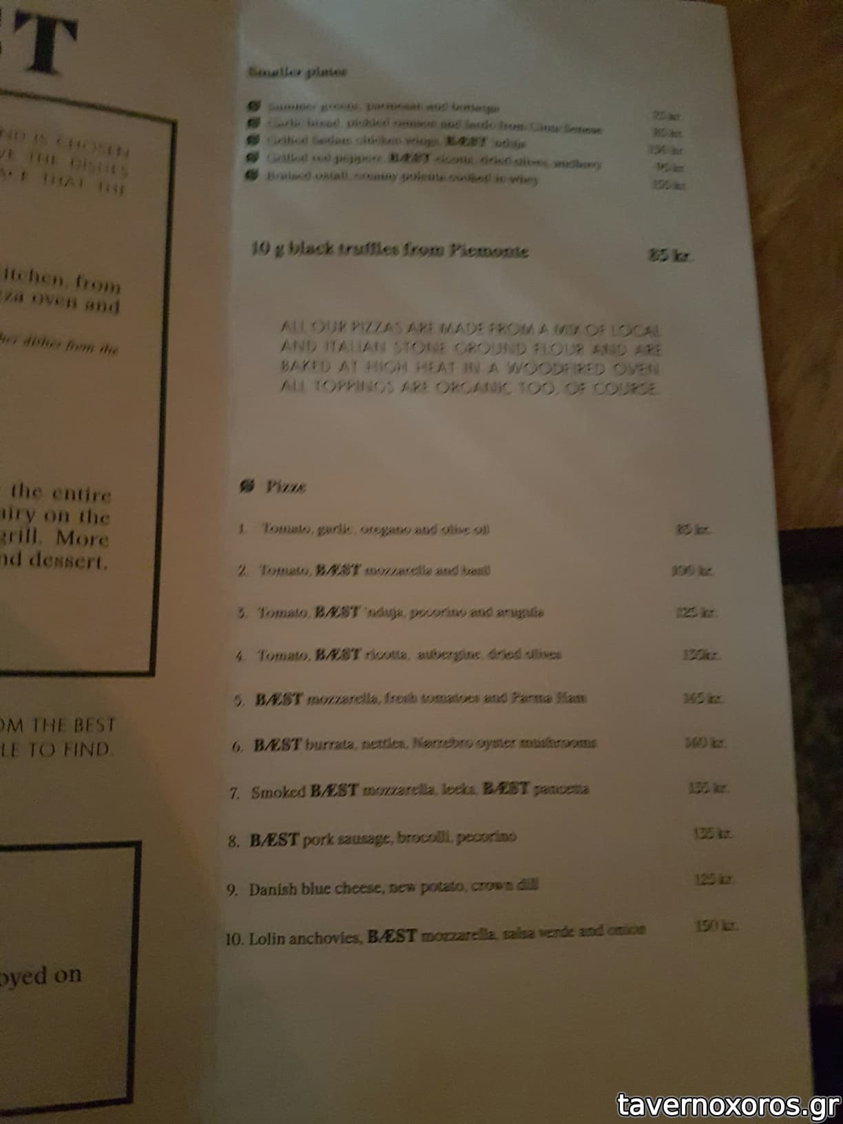 Στο φαγητό τώρα: έχουν την δικιά τους παραγωγή μοτσαρέλας όπως και την δικιά τους παραγωγή αλλαντικών. Όλα είναι οργανικά και πολλά από τα προιόντα τους εισάγουν από την Ιταλία. Η pizza τους (η οποία ήταν από τις καλύτερες που έχω δοκιμάσει στην ζωή μου) γίνεται από ζύμη την οποία παλαιώνουν για 2 μέρες και έτσι μένει στον φούρνο μόνο ένα λεπτό.