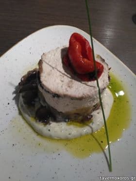 -Κοτοπουλο τοσκανης. Μαλακο, τρυφερο, νοστιμο, κα αυτο σερβιρισμενο με εντυπωσιακο τροπο (κρεμεται απο ενα τσιγκελι). Το περιελουζαν με μια σως μανιταριων/τρουφας κατα το σερβιρισμα.