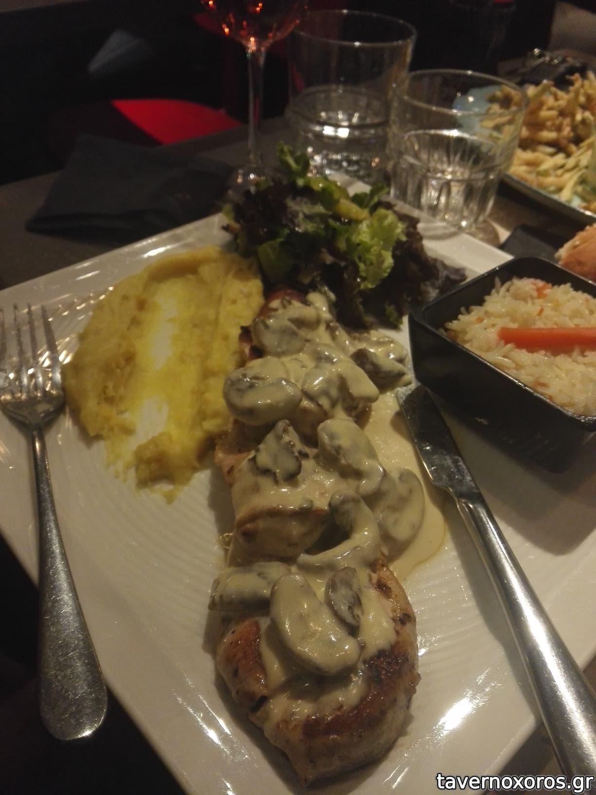 Επισης πολυ καλο και το μπιφτεκι του με την σως τυριων! Τα συνοδευτικα (αρωματικο ρυζι και πατατες baby + σαλατα), εξισου πολυ νοστιμα.