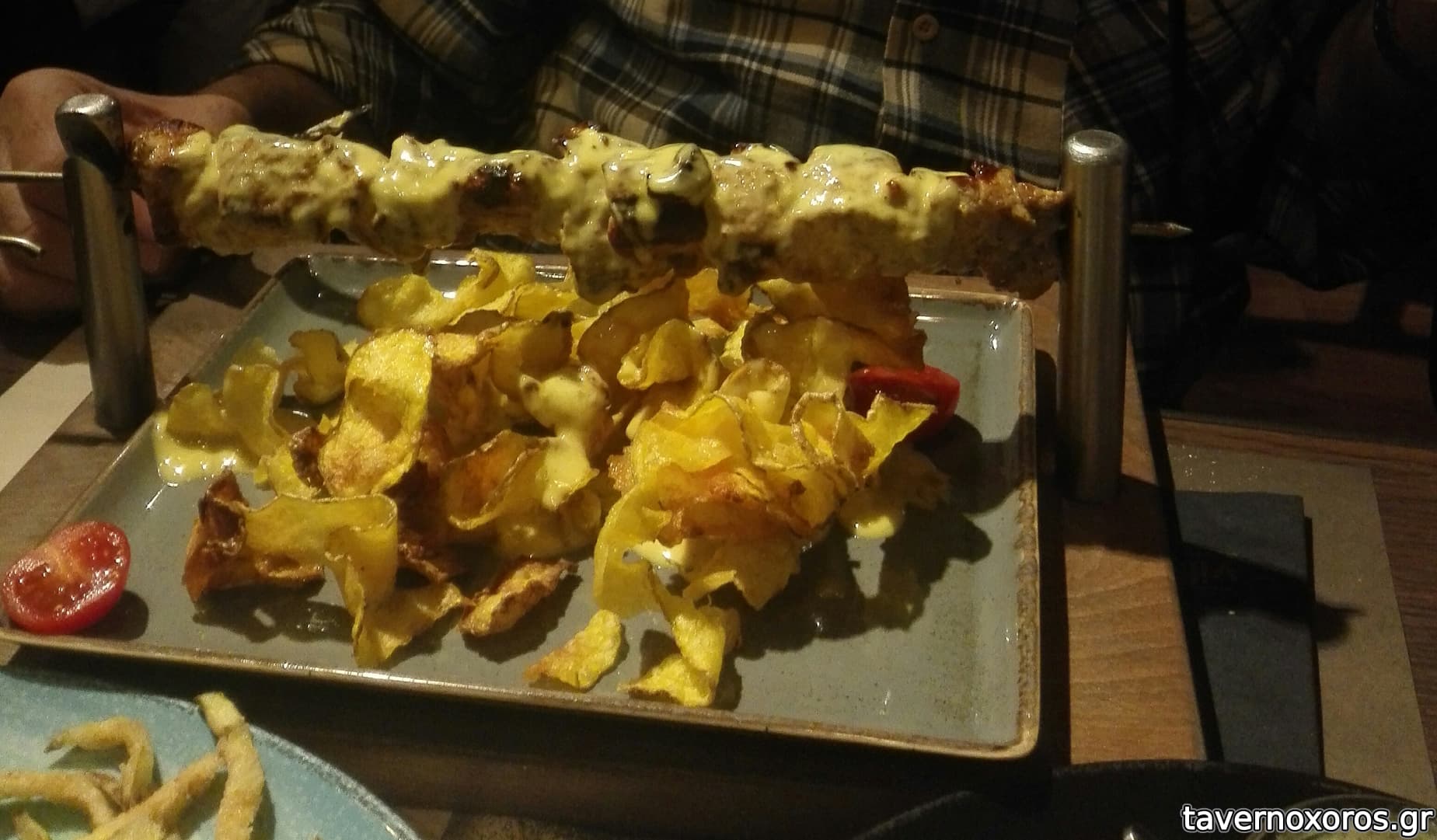 Τα φαγητά του είναι πολύ καλά! Ότι φάγαμε ήταν νόστιμο και οι μερίδες μεγάλες. Έχει ένα μεγάλο σουβλάκι χοιρινό και ένα κοτόπουλο που τα σερβίρει με πολύ εντυπωσιακό τρόπο αλλά και τα συνοδεύει με μια νόστιμη σως.