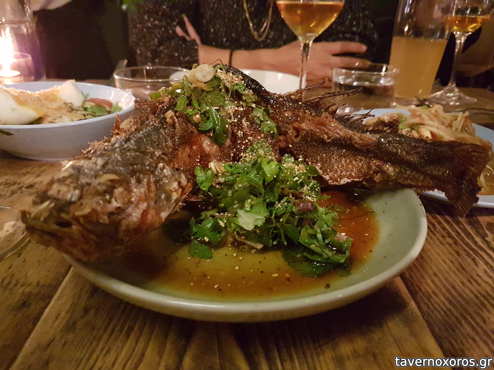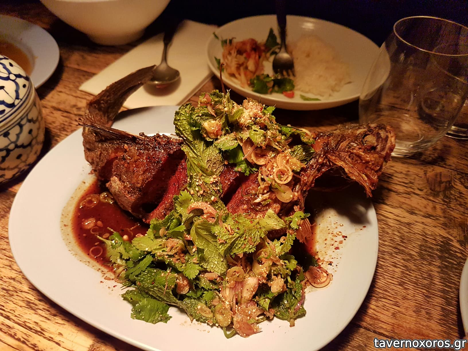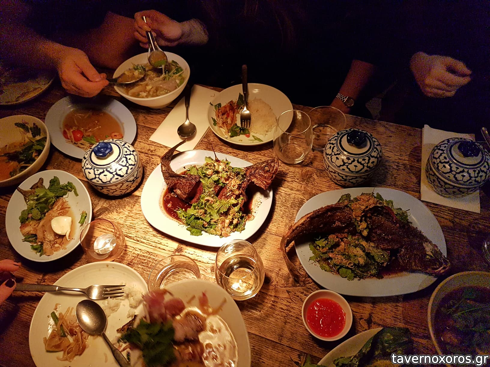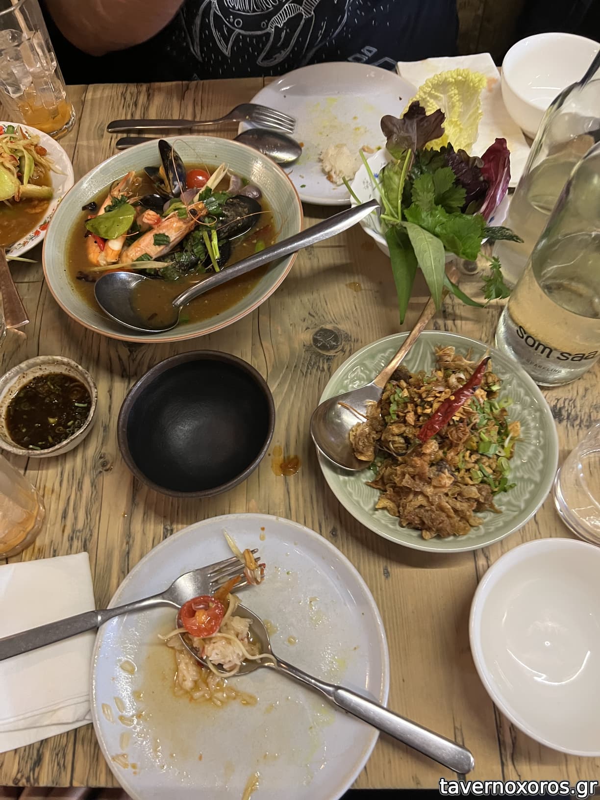 δοκιμάσαμε αρκετά πιάτα, τα οποία όλα έβγαζαν ένα καταπληκτικό umami με τον συνδυασμό γέυσεων, αρωμάτων και υφών. Ξεχωρισα το τηγανιτό ολόκληρο τραγανότατο λαβράκι, όπως επίσης και την σαλάτα της πράσινης παπάγιας με τον παλαιωμένο ζωμό ψαριού 9ήταν βέβαια τέρμα καυτερό).