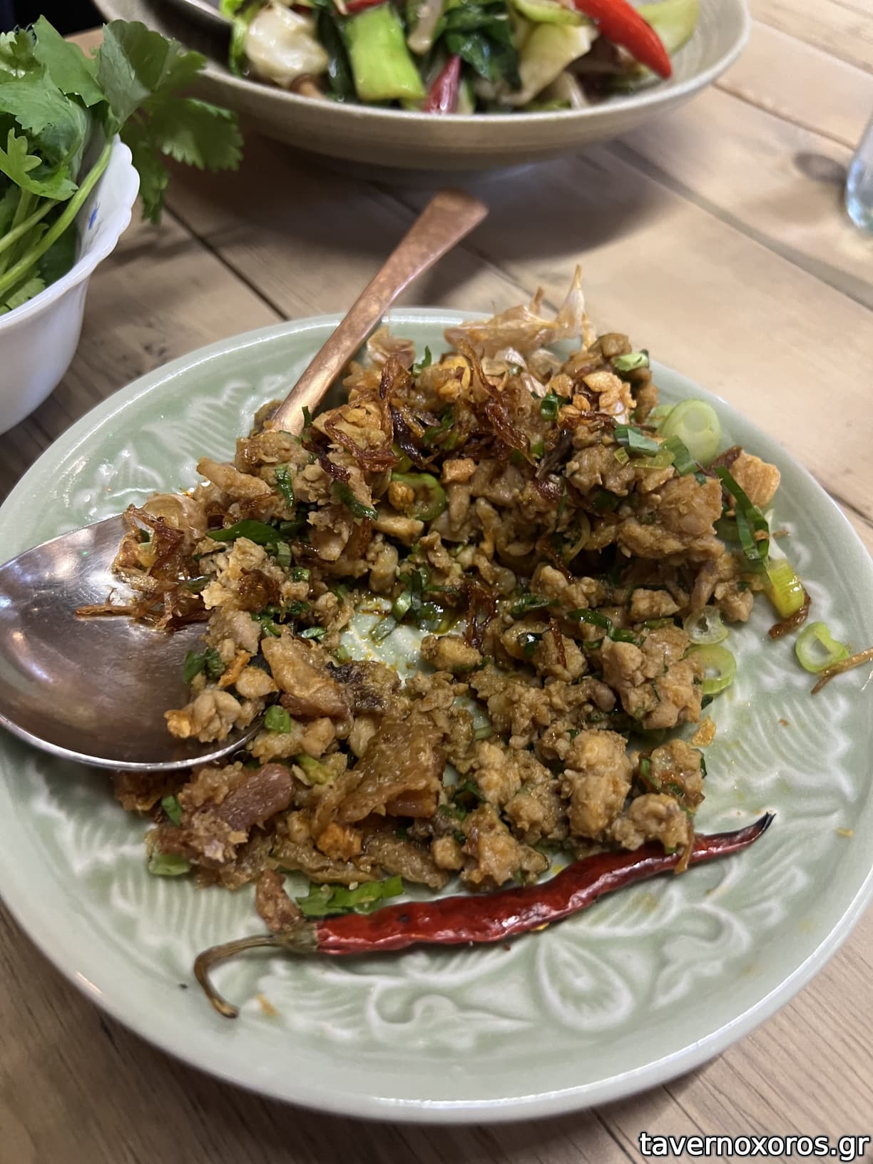 Σαλάτα πράσινης παπάγιας, με παλαιωμένη fish sauce (ζόρικο και υπερβολικά καυτερό)