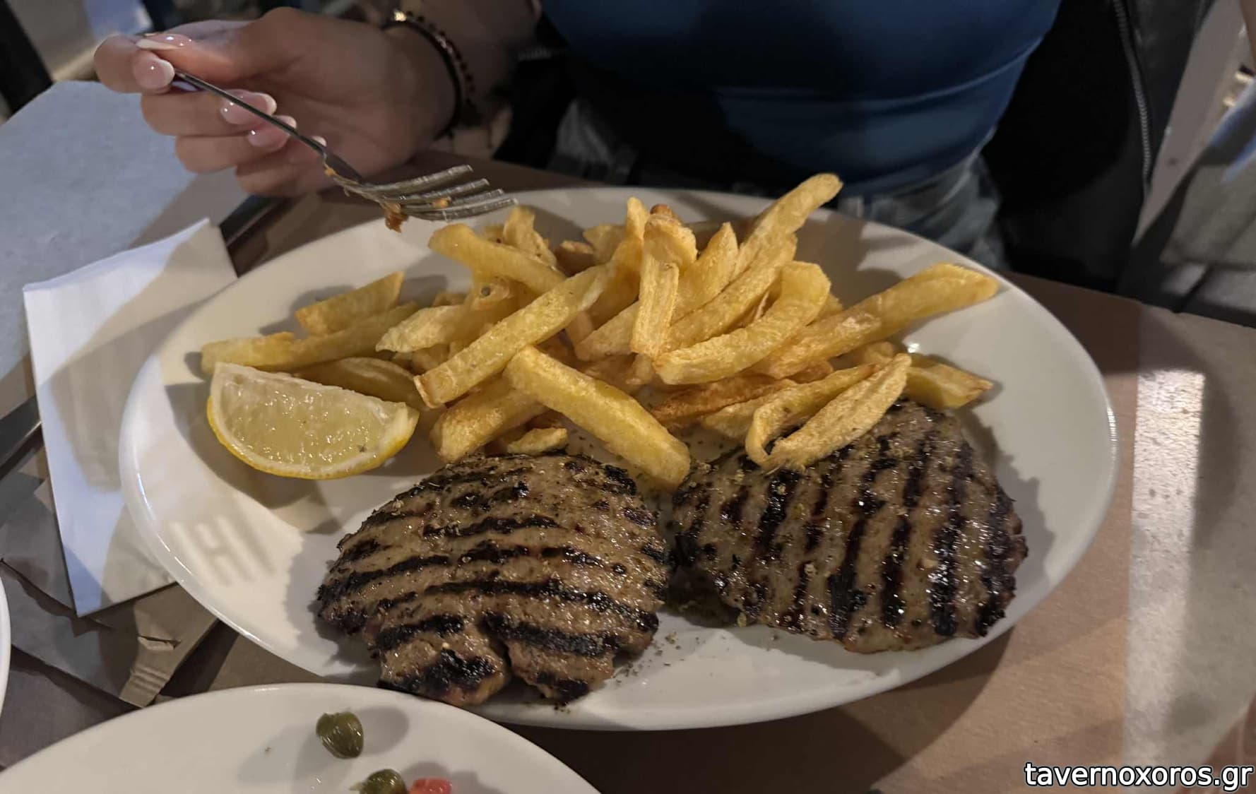 Το φαγητό, ωστόσο, δεν με εντυπωσίασε. Εξαίρεση αποτέλεσαν οι τηγανητές πατάτες που (συνόδευαν τα κυρίως πιάτα και) ήταν πολύ νόστιμες, καθώς και η μελιτζάνα η οποία ήταν εξαιρετική, παρόλο που δεν σου γέμιζε το μάτι. Από τα πιάτα ημέρας που αναγράφονταν στο μενού είχε μόνο τις γαρίδες και άλλο ένα που δυστυχώς μου διαφεύγει, γεγονός που μας απογοήτευσε. Το χύμα ροζέ κρασί ήταν καλό και σε λογική τιμή. Σε αντίθεση με τα υπόλοιπα δύο σχόλια, δεν βρήκα τις τιμές πιο τσιμπημένες από άλλα αντίστοιχου ύφους μαγαζιά στο νησί.