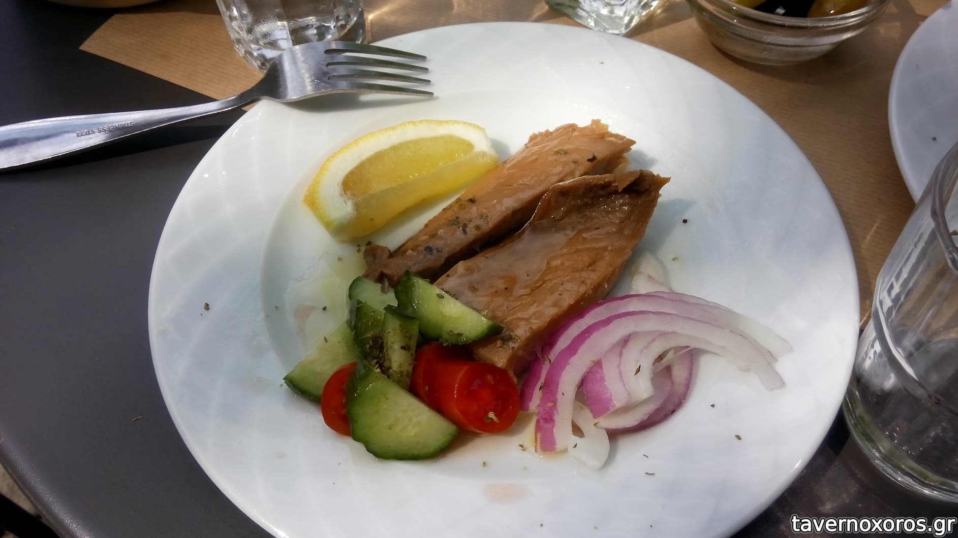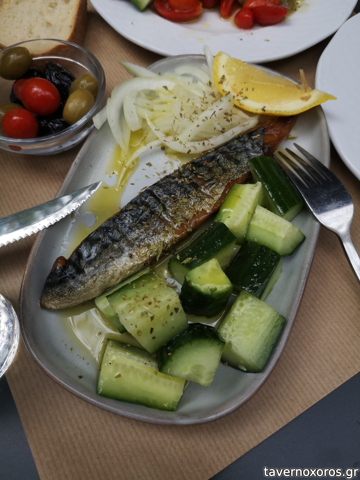 Σκουμπρί καπνιστό - κρύο πιάτο, αν είχε περαστεί λίγο από τη φωτιά θα ήταν καλύτερο