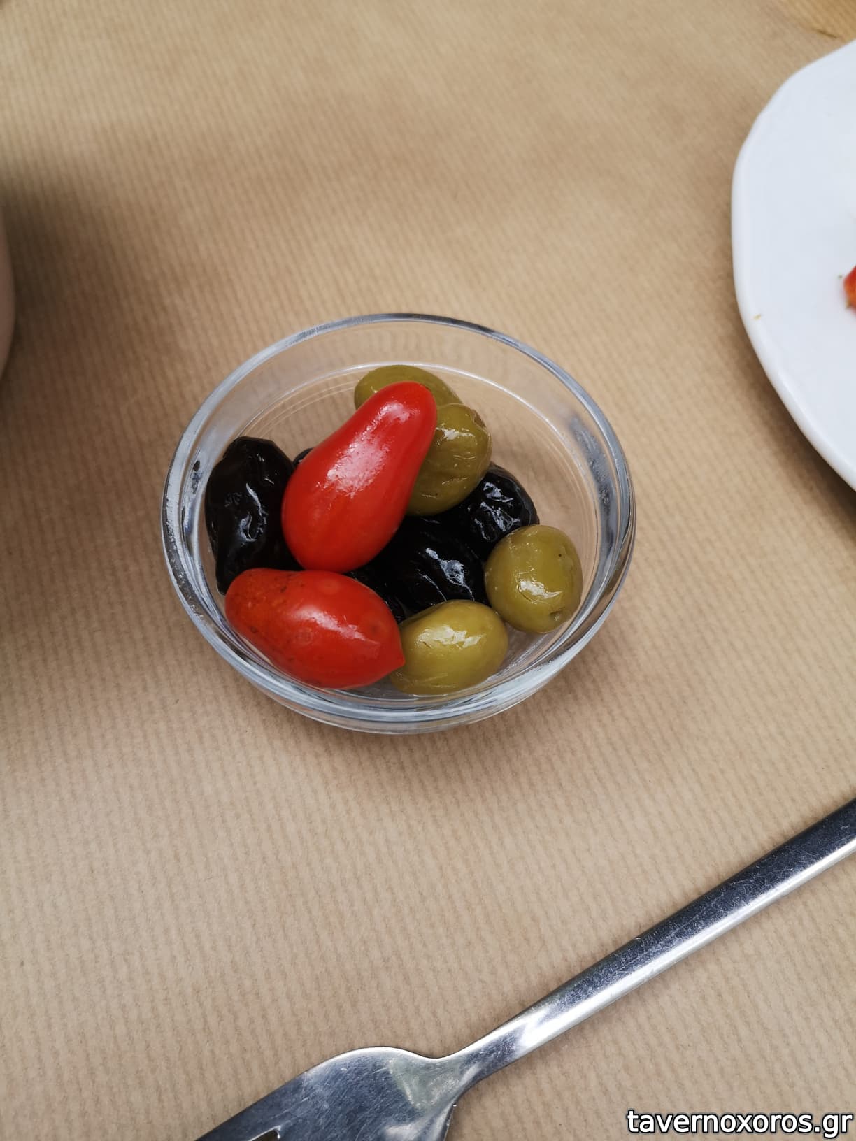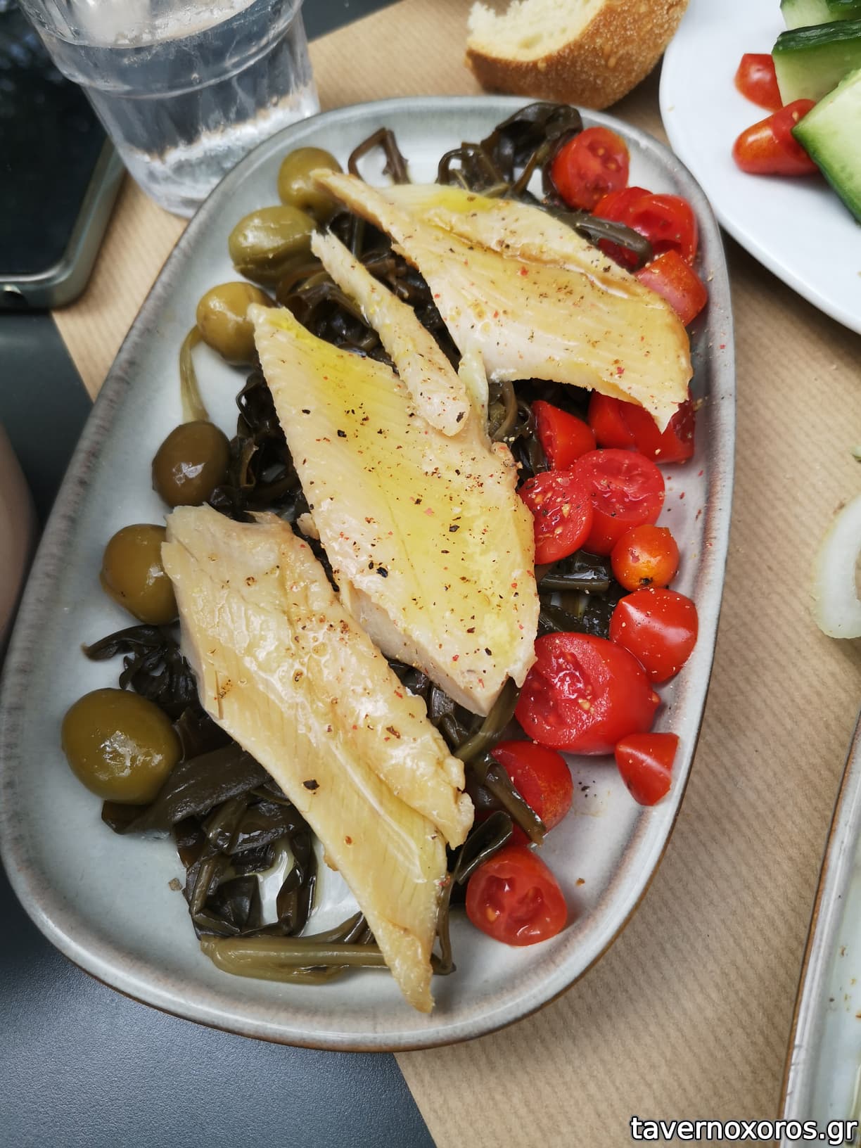 Ήπιαμε ενα τσίπουρο Χατζή άνευ (100ml), καλούτσικο με κέρασμα ελιές και ντοματίνια. Από μεζέδες, διαλέξαμε: