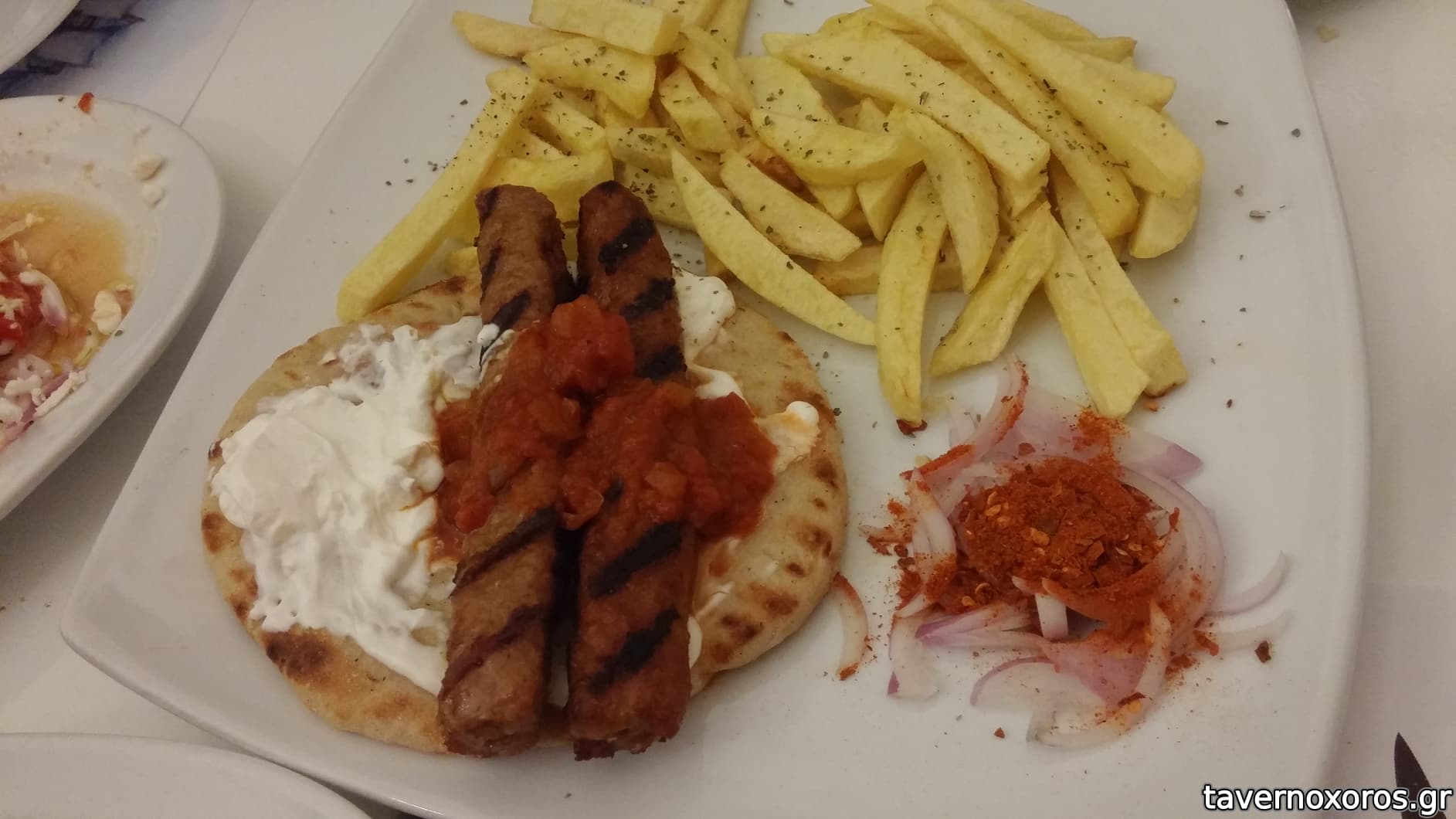 Κεμπάπ, αρκετά καλή η μερίδα με μια ψητή πιπεριά, ντομάτα, πίτες και κρεμμύδι με σουμάκ 9,5€.