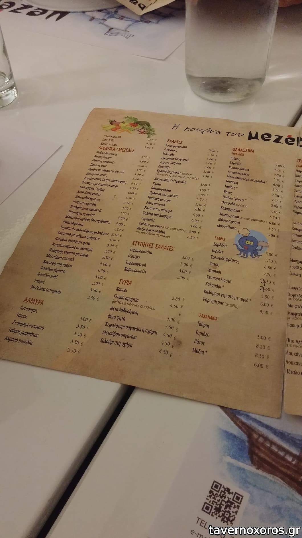 Δεν μας άρεσε το έμμεσο κουβέρ, χρέωση 0,9€ για ένα ψωμάκι προζυμένιο καλό μεν αλλά μικρό και υπερτιμημένο, όπως και το εμφιαλωμένο νερό 1,7€.