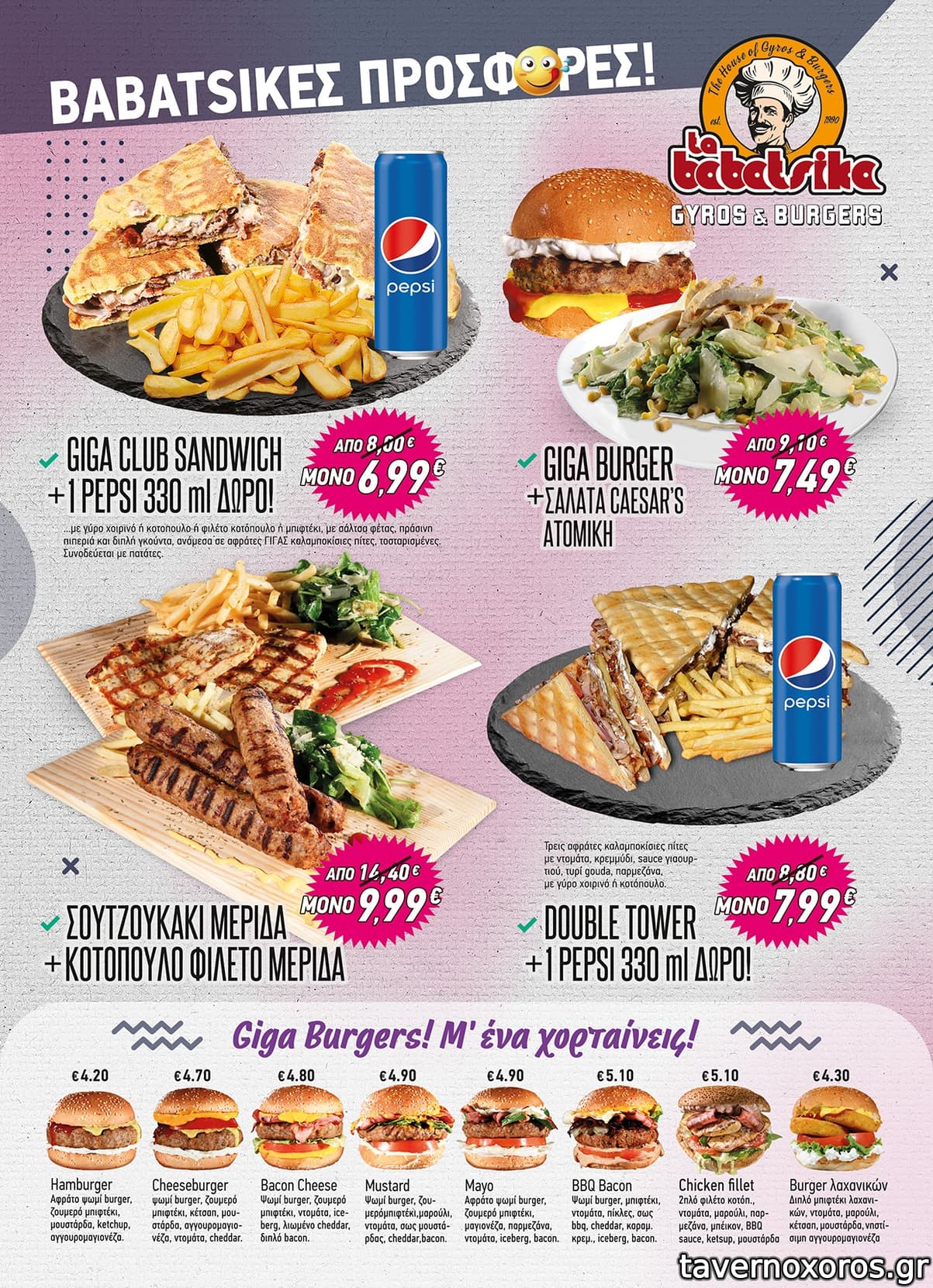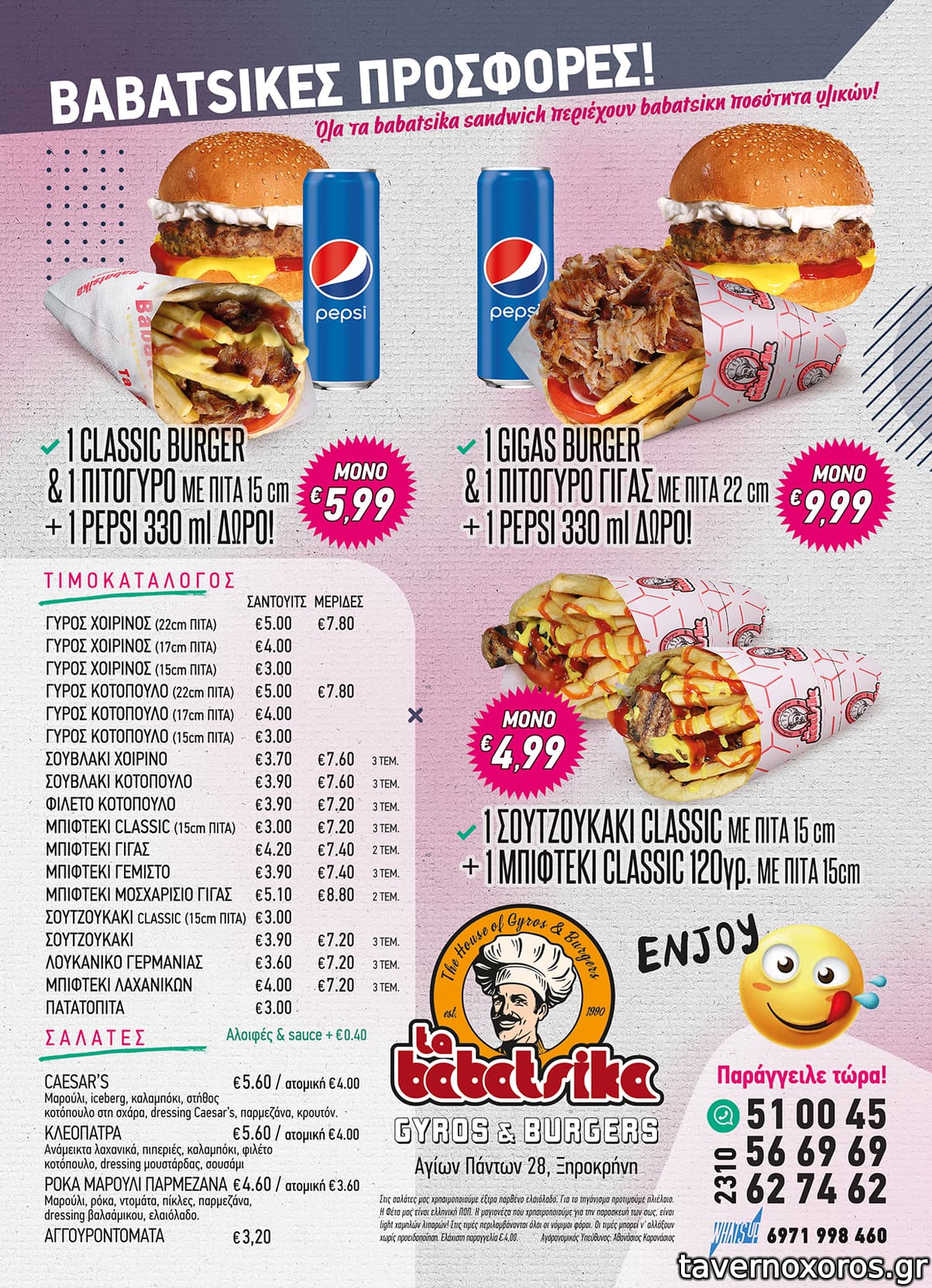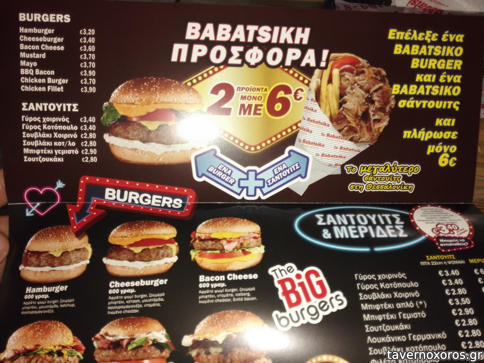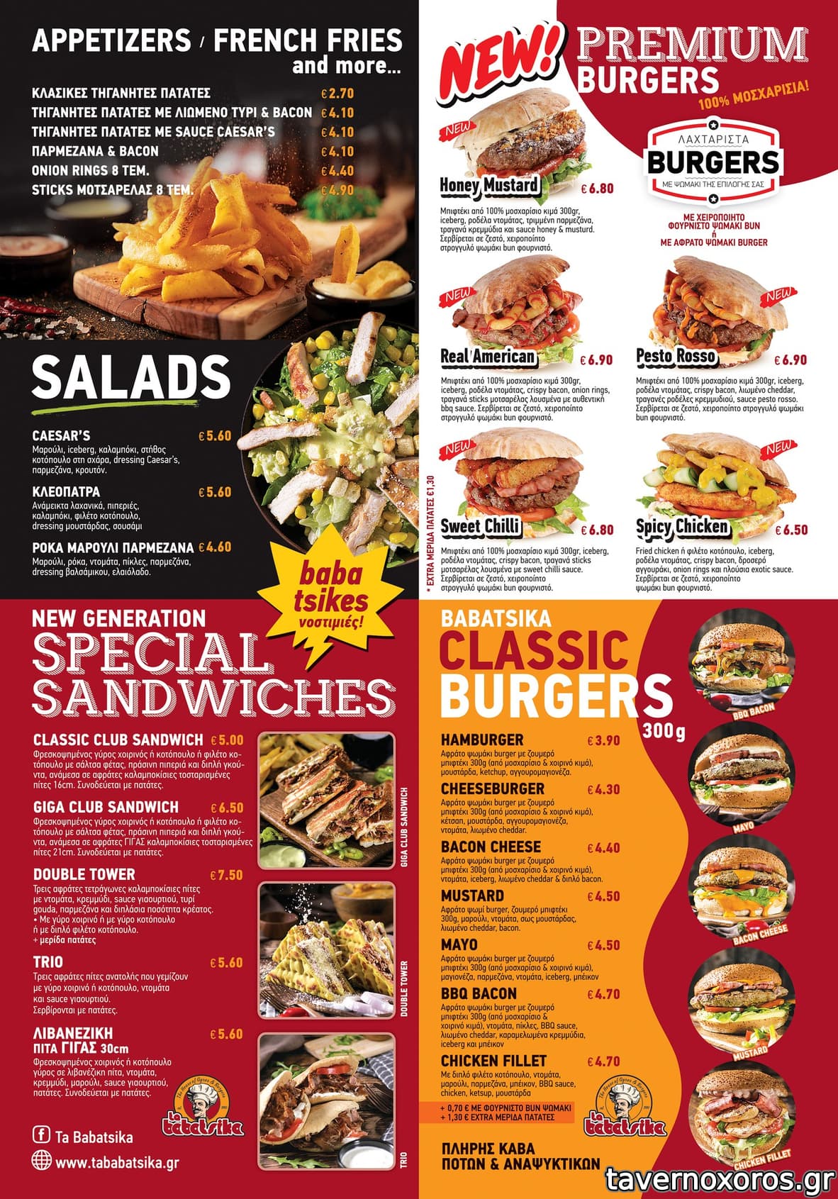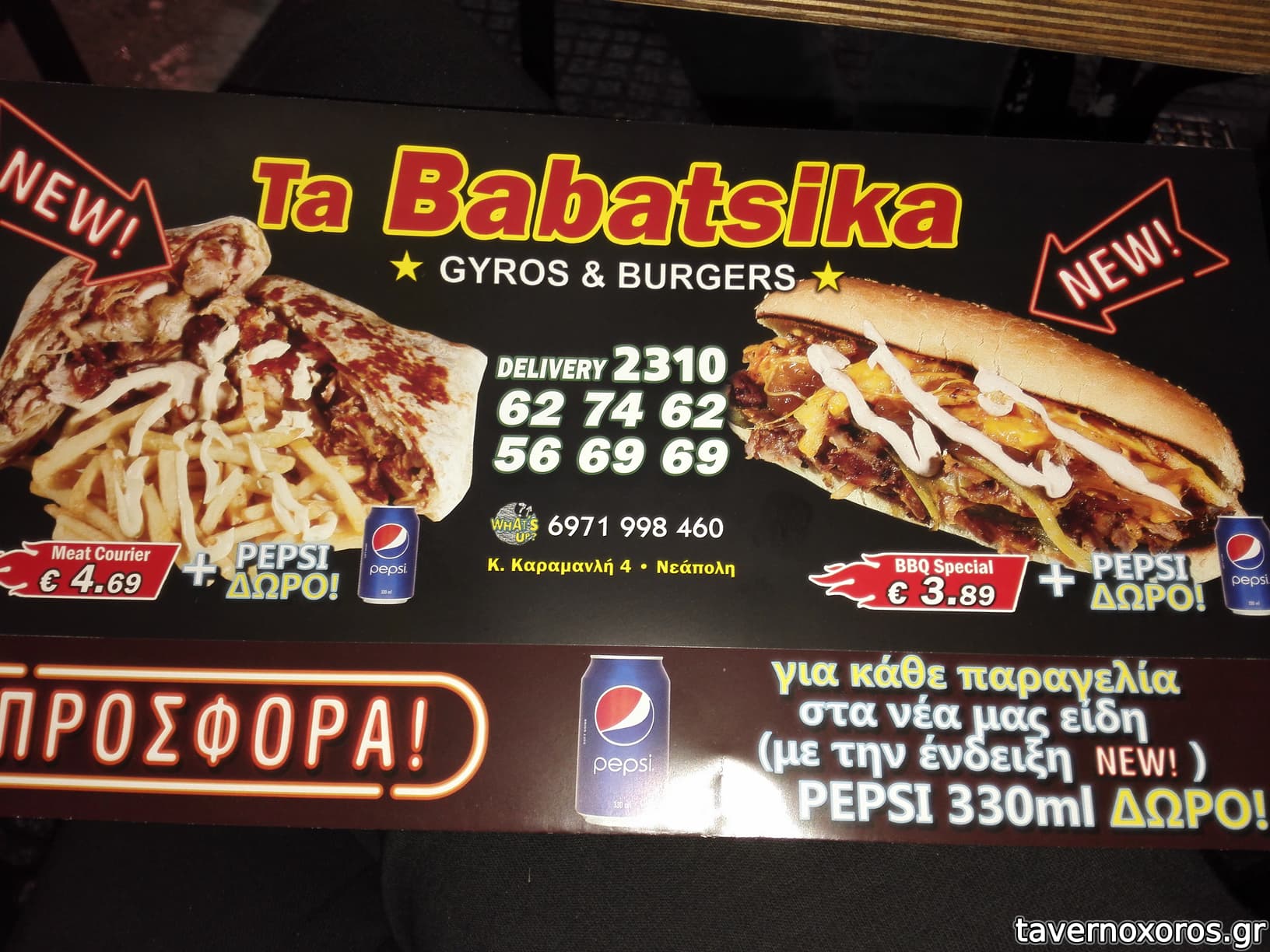 | Λέξεις κλειδιά | Τα Μπαμπάτσικα, #σουβλάκια, #σουτζουκάκια, #μπιφτέκι, #κοτόπουλο, #λουκάνικο, #club sandwich, #burgers, #χοιρινή, #μπιφτέκι γεμιστό, #σάντουιτς |