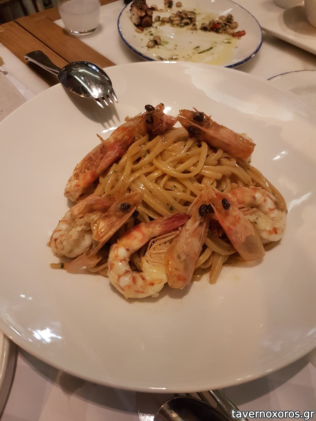 "Λιγκουίνι με φρέσκιες γαρίδες" (καλό, αλλά δε θα το ξανάπαιρνα)