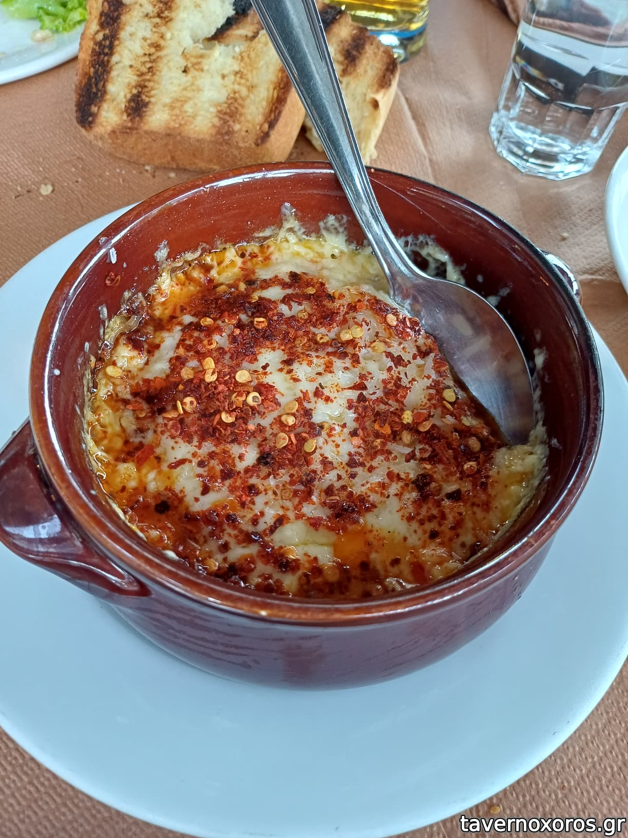 Τζατζίκι (αδύναμο) και τυροσαλάτα (καλή, με "φλουριά" καυτερής πιπεριάς)