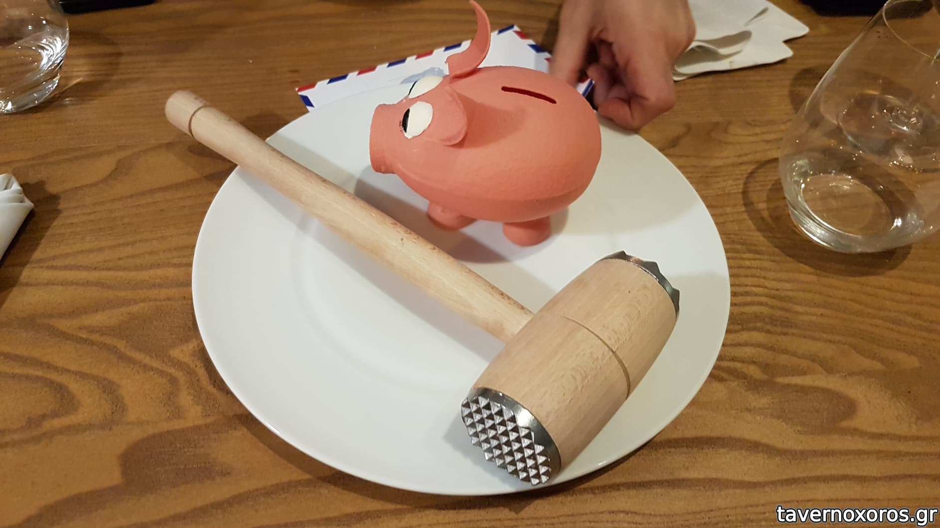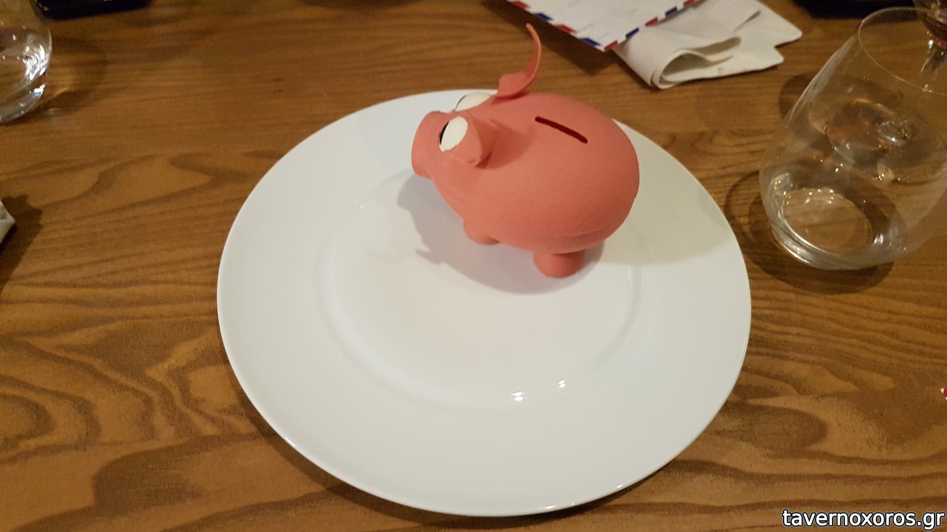 Γουρουνάκι από λευκή σοκολάτα, μέσα έχει τον λογαριασμό