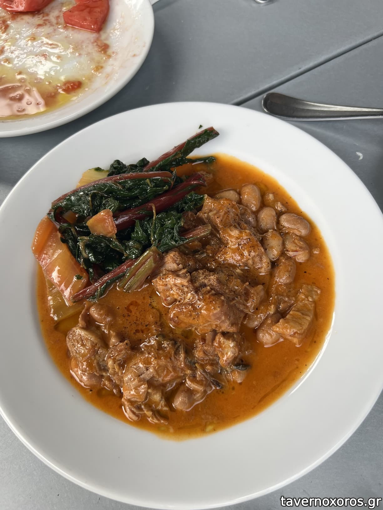 Αρνί με φασόλια και χόρτα