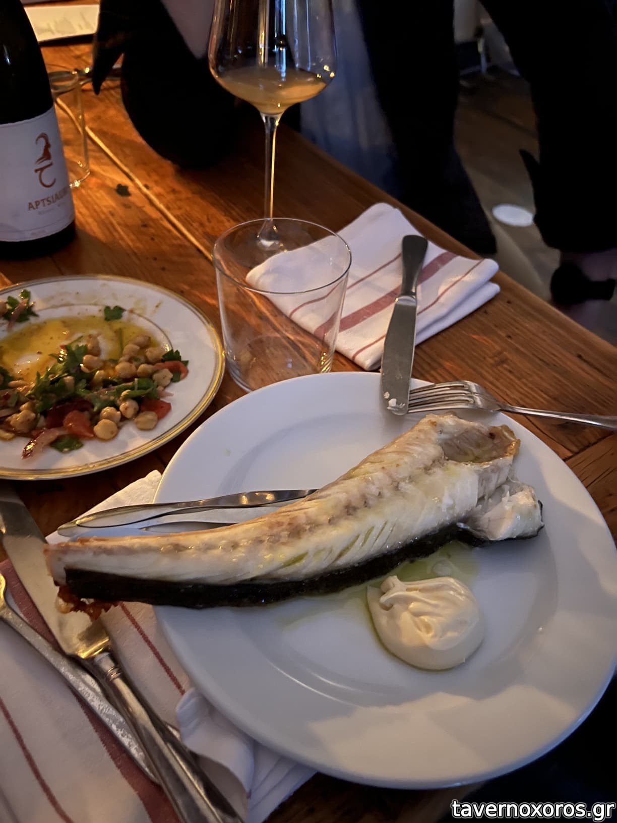 Φαγητό: δοκιμάσαμε κυνήγι, πέρδικα και αγριόπαπια. Πολύ καλά και τα δύο ψημένα όπως ακριβώς ζητήθηκαν. Το καλύτερο κομμάτι ήταν και όλα τα άλλα που τα συνόδευαν: τα συκωτάκια τους είχαν γίνει πατέ, και το κρέας από τα πόδια είχε ξεκοκκαλιστεί και μας το σέρβιραν σαν κιμά χώρια με πουρέ πατάτας. Επίσης, μας έφεραν και φρεσκοτηγανισμένα chips πατάτας στο λίπος των πουλερικών.