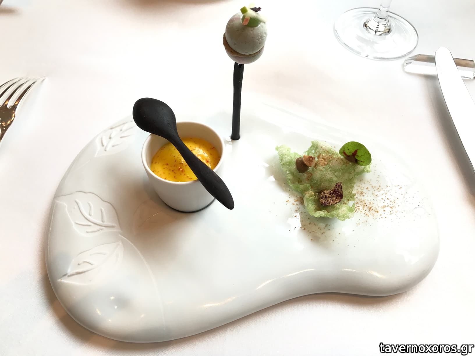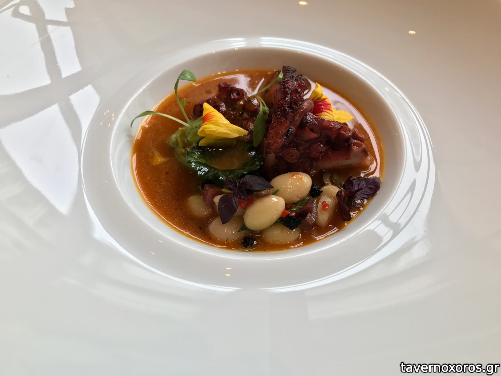 Η σούπα με το Φουά γκρα κ τον λαγό είχε πολύ πλούσια γεύση, το χταπόδι με τα φασόλια τέλειο (πρώτη φορά είδα τόσο λουκούμι χταπόδι εκτός Ελλάδος). Τα χτένια κ η πάπια ψημένα στην εντέλεια, και τα γλυκά από τον Laurent Jeannin οπτικά αριστουργήματα.