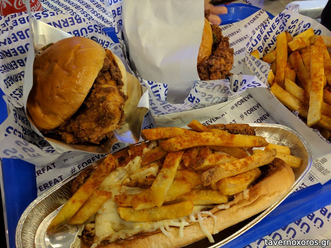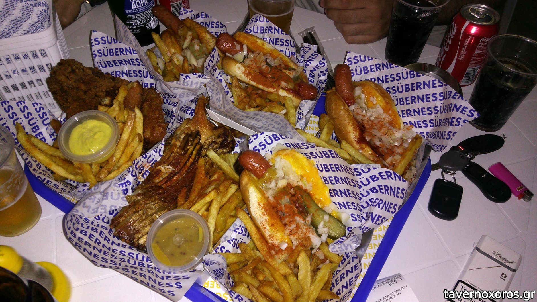 Κοτόπουλο τηγανητό & crispy pork belly & "uber dog" x4