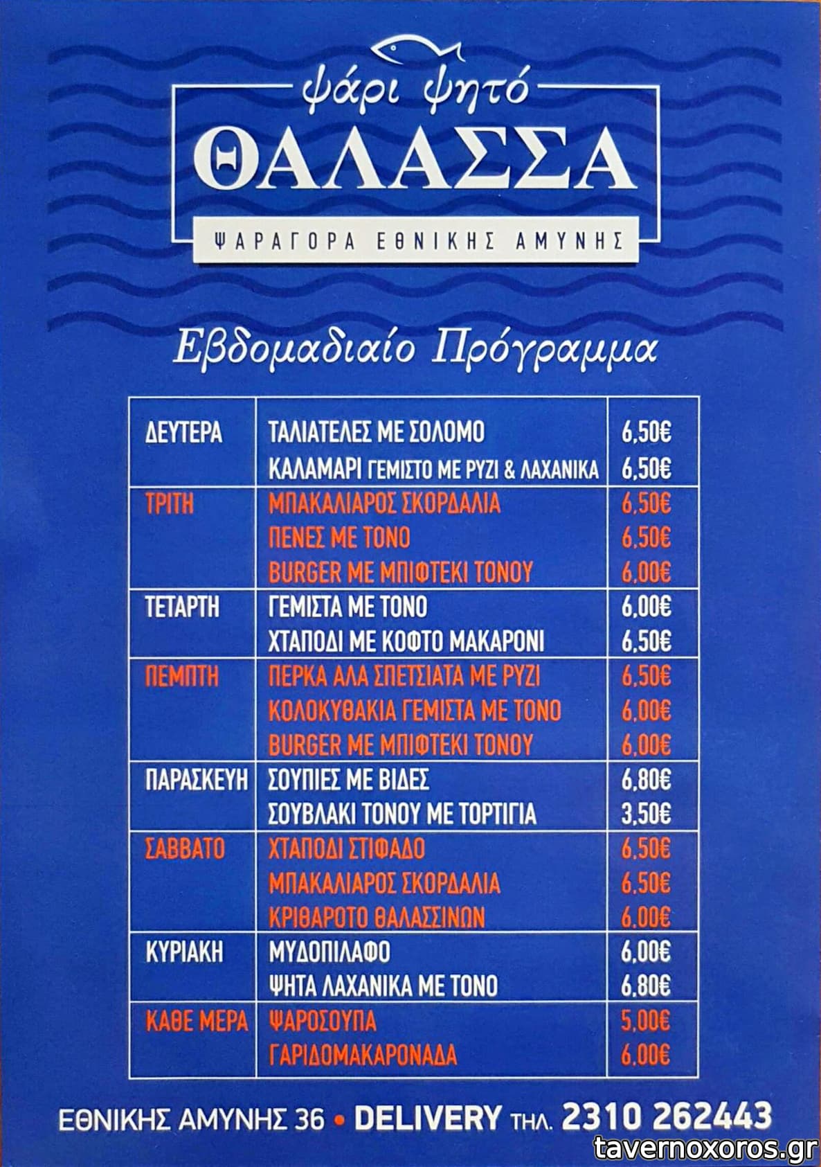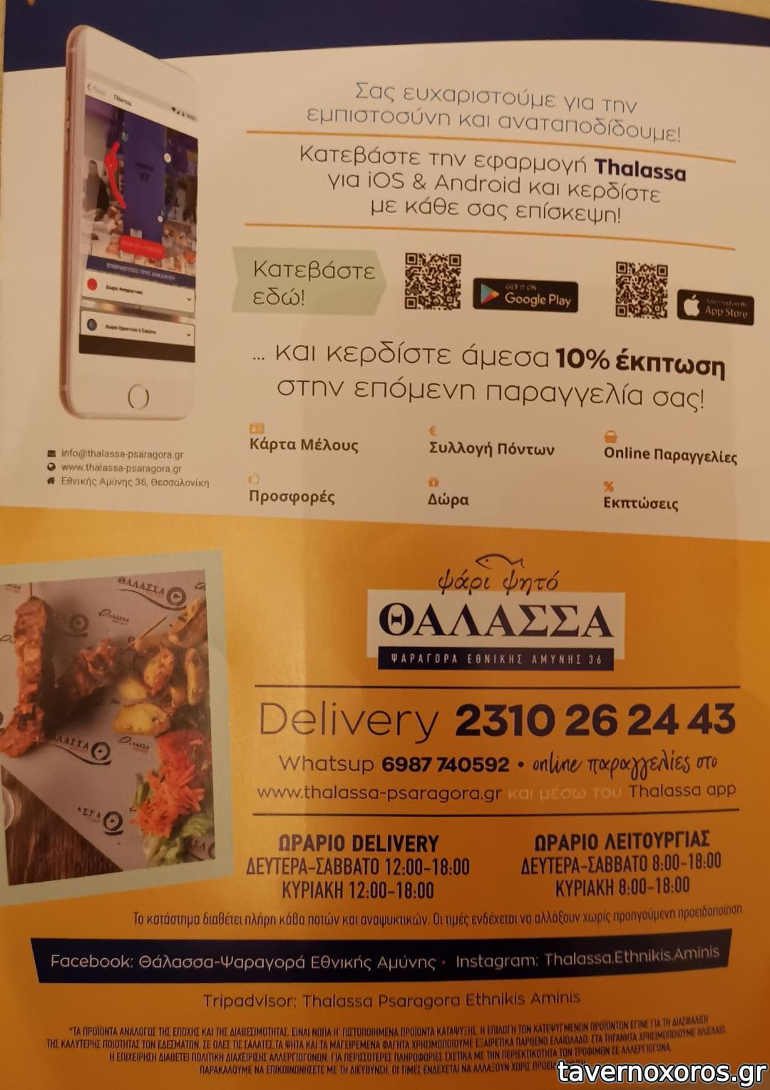 | Λέξεις κλειδιά | #ιχθυοπωλείο, #take away, #χταπόδι, #καβουροσαλάτα, #ταμπουλέ, #ντολμαδάκια, #λαχανοντολμάδες, #μπακαλιάρος σκορδαλιά, #σουπιά κρασάτη, #μυδοπίλαφο, #σουτζουκάκια σμυρνέικα, #παπουτσάκια, #σολομός, #χταπόδι στιφάδο, #γαριδομακαρονάδα, #ψαρόσουπα, #γαύρος, #σαρδέλα, #μαρίδα, #αθερίνα, #θράψαλα, #σαφρίδια, #γαλέος, #γαρίδες, #σουπιές |