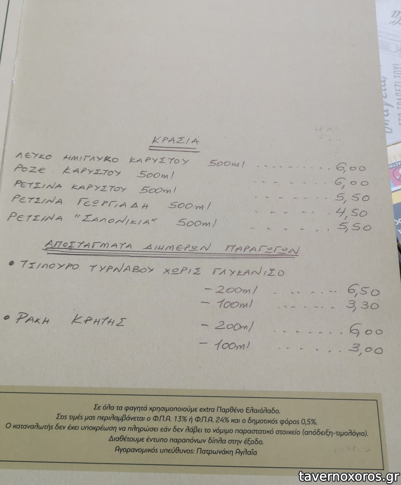 | Ώρες παραγγελίας | 13:00-17:30 |