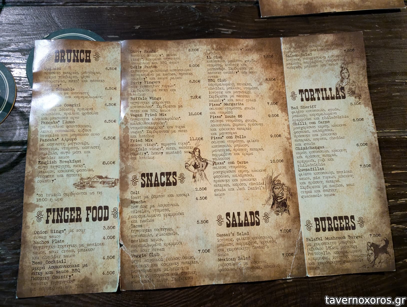 Από φαγητό δοκιμάσαμε μια τορτίγια με κοτόπουλο (συμπαθητική, με καραμελωμένο κρεμμύδι, gouda, μπέικον και μαγιονέζα), το mix grill που ήταν αρκετά τίμιο (5 λουκάνικα, μπιφτέκι μοσχαρίσιο, μπιφτέκι κοτόπουλο, φιλέτο κοτόπουλο, 2 πανσέτες, πατάτες country, πίτες, coleslaw, ΒΒQ sauce και honey mustard sauce) και τα νάτσος, τα οποία ήταν αρκετά βαριά και γενικότερα δεν άρεσαν.