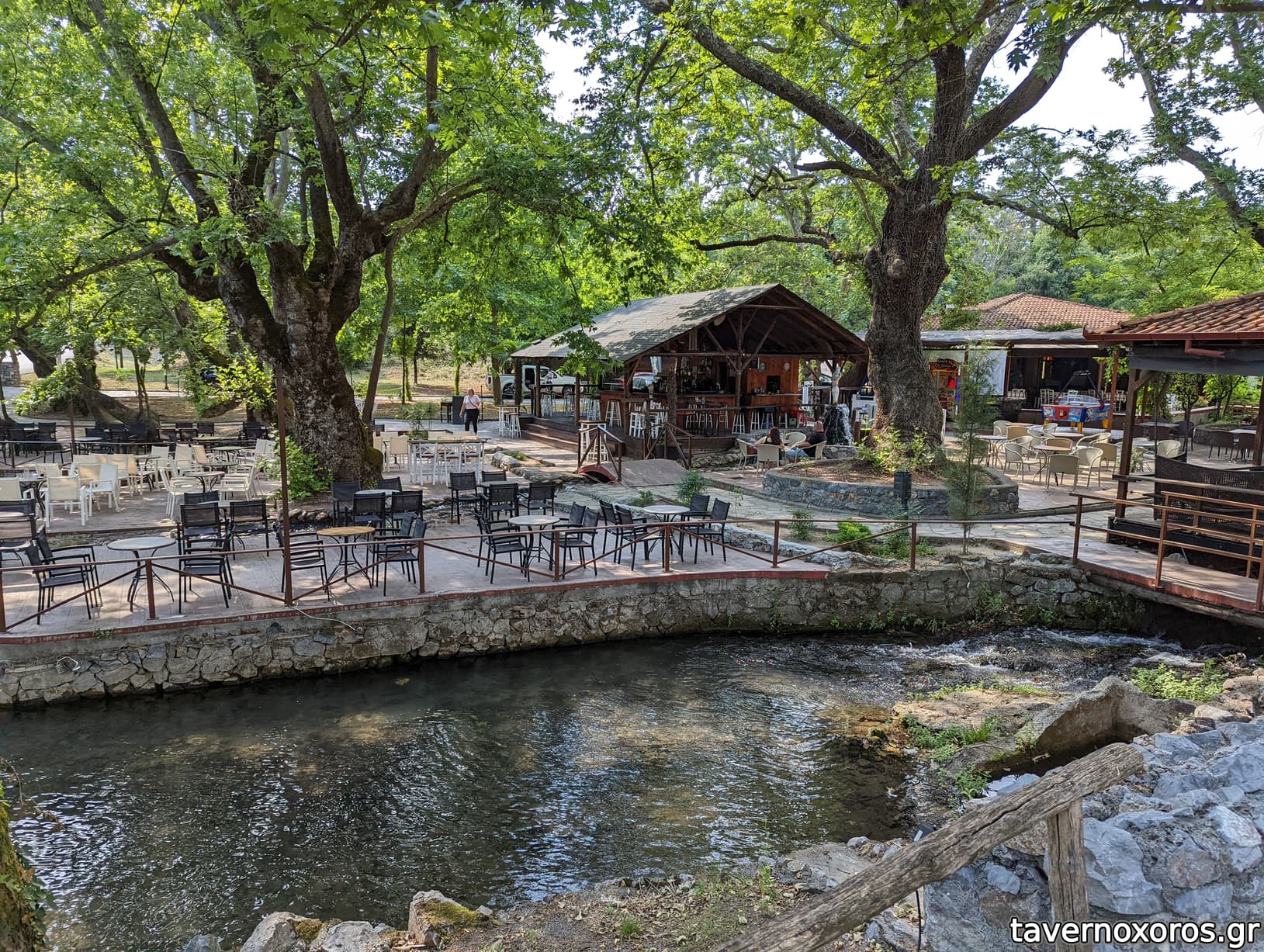 Πήγαμε μια Κυριακή τέλη Νοεμβρίου, μια και βρεθήκαμε στην περιοχή. Όλα τα λεφτά είναι το σημείο του μαγαζιού, που είναι πάνω σε μια καμπύλη του ρέματος της Αραβησσού, μέσα σε τεράστια πλατάνια. Ο χώρος έξω θυμίζει πολύ Αγ. Νικόλαο Νάουσας (με τα μισά χιλιόμετρα, βέβαια). Το καλοκαίρι πρέπει να είναι πραγματικά παραδείσιο, ακόμα και για καφέ, εκεί μέσα στο S-άκι του ποταμού.