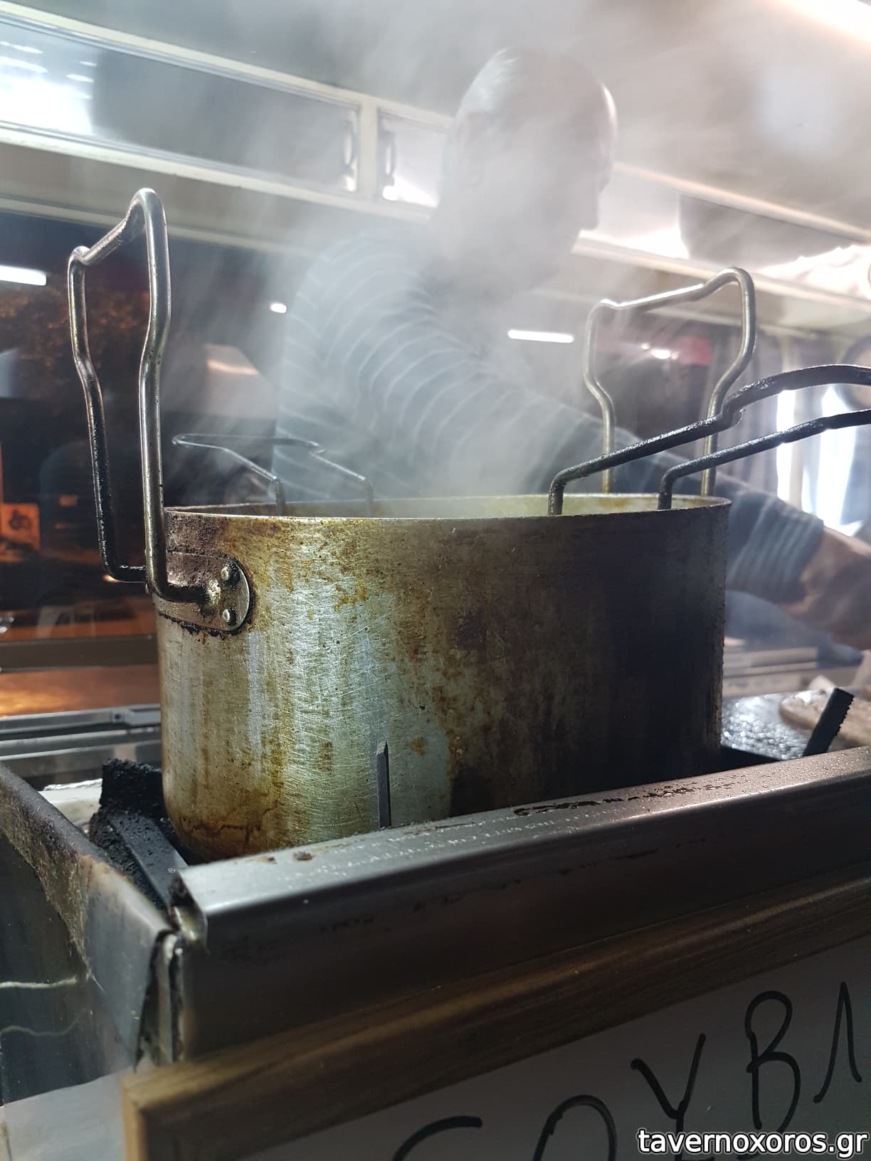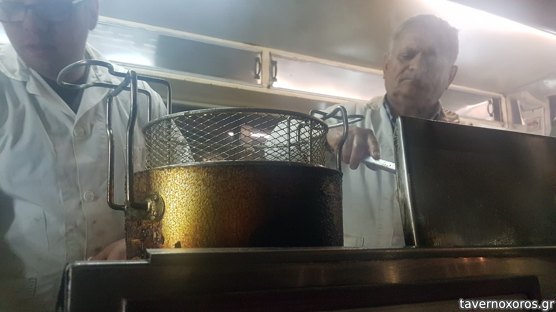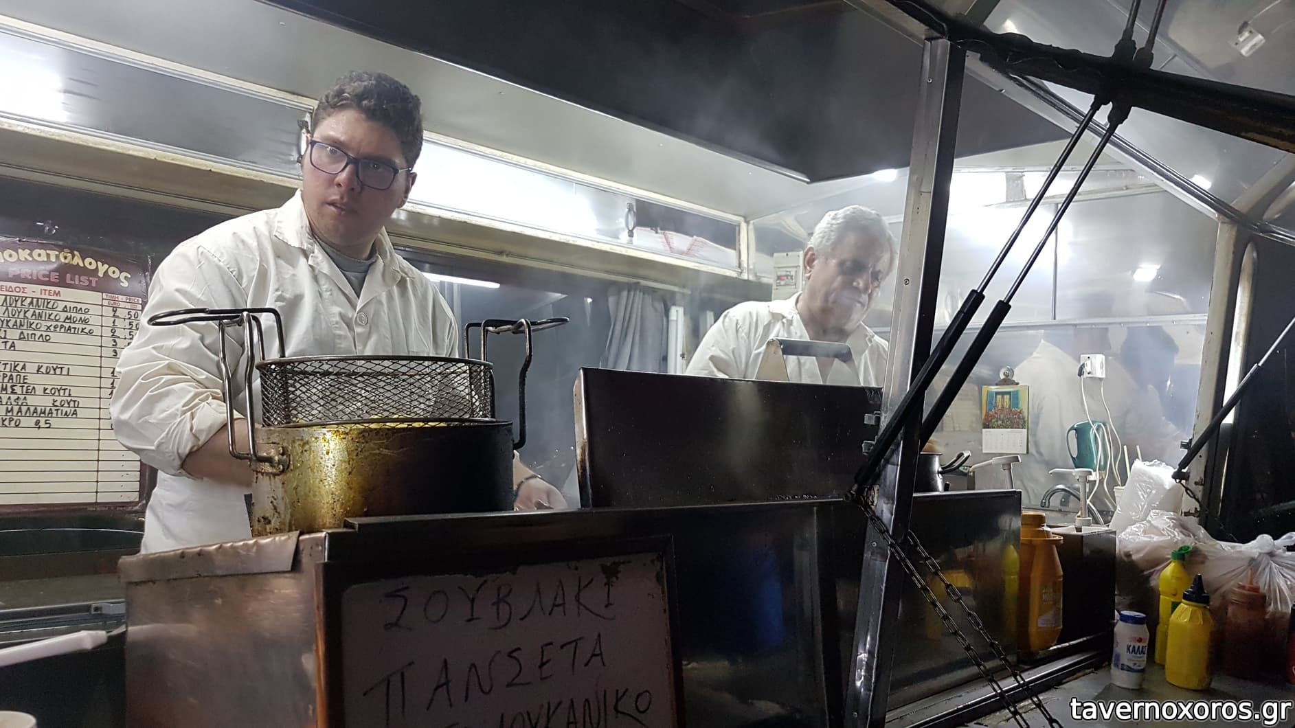 Η πεντακάθαρη φριτέζα και στα δεξιά, η Αυτού μεγαλειότητά του, ο λαϊκός ηγέτης, ο οραματιστής, ο ένας και μοναδικός, Βασίλης