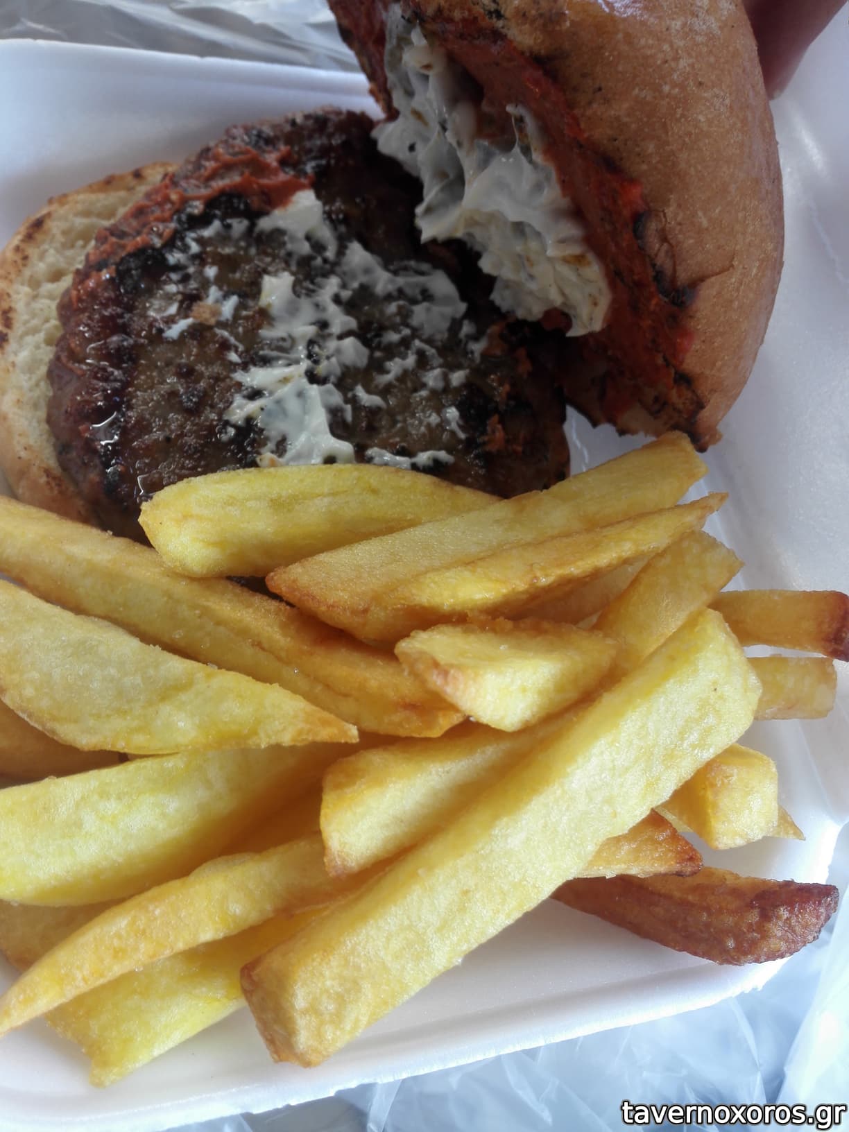 Και οι αλοιφες του μου αρεσαν. Στο μπεργκερ εβαλε αγγουρομαγιονεζα+παπρικα+μουσταρδα, οι οποιες ηταν πολυ ταιριαστες και ανεβαζαν το συνολο.