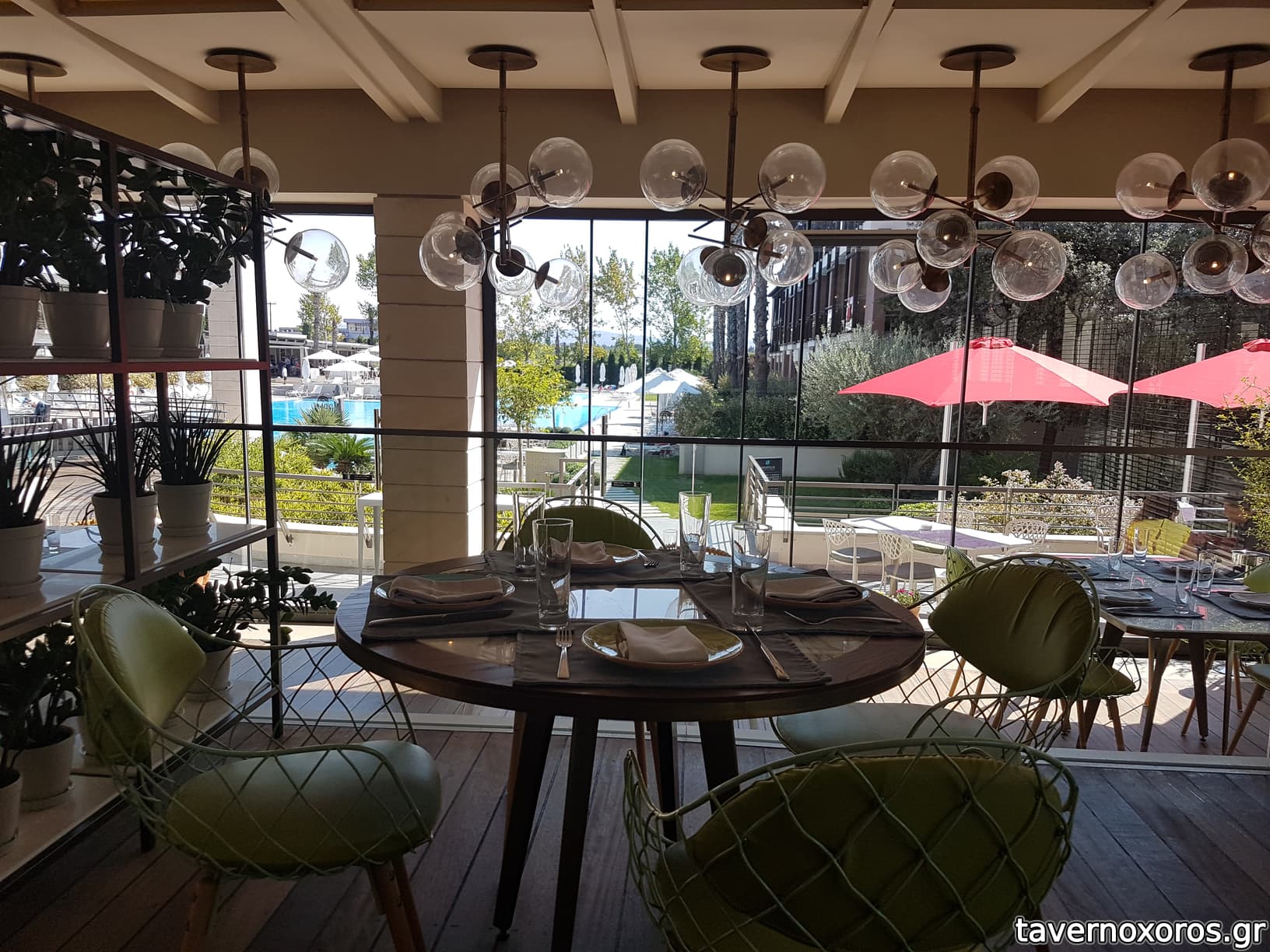 Ο χώρος μοντέρνος, ντιζαϊνάτος, σχετικά ωραίος θα έλεγα. Λίγο έχεις την αίσθηση ότι είσαι σε αίθουσα για πρωινό ξενοδοχείου, που δεν είσαι (σερβίρεται αλλού), αλλά ίσως ενέτεινε αυτήν μου την αίσθηση το γεγονός ότι ήταν άδειο το εστιατόριο (υπήρχε μία άλλη παρέα) και ο χώρος είναι σχετικά μεγάλος. Οι καρέκλες, όπως λέει το ταβερνοαλάνι, δεν ήταν όλες βολικές. Ωστόσο, συνολικά χώρος ευχάριστος.