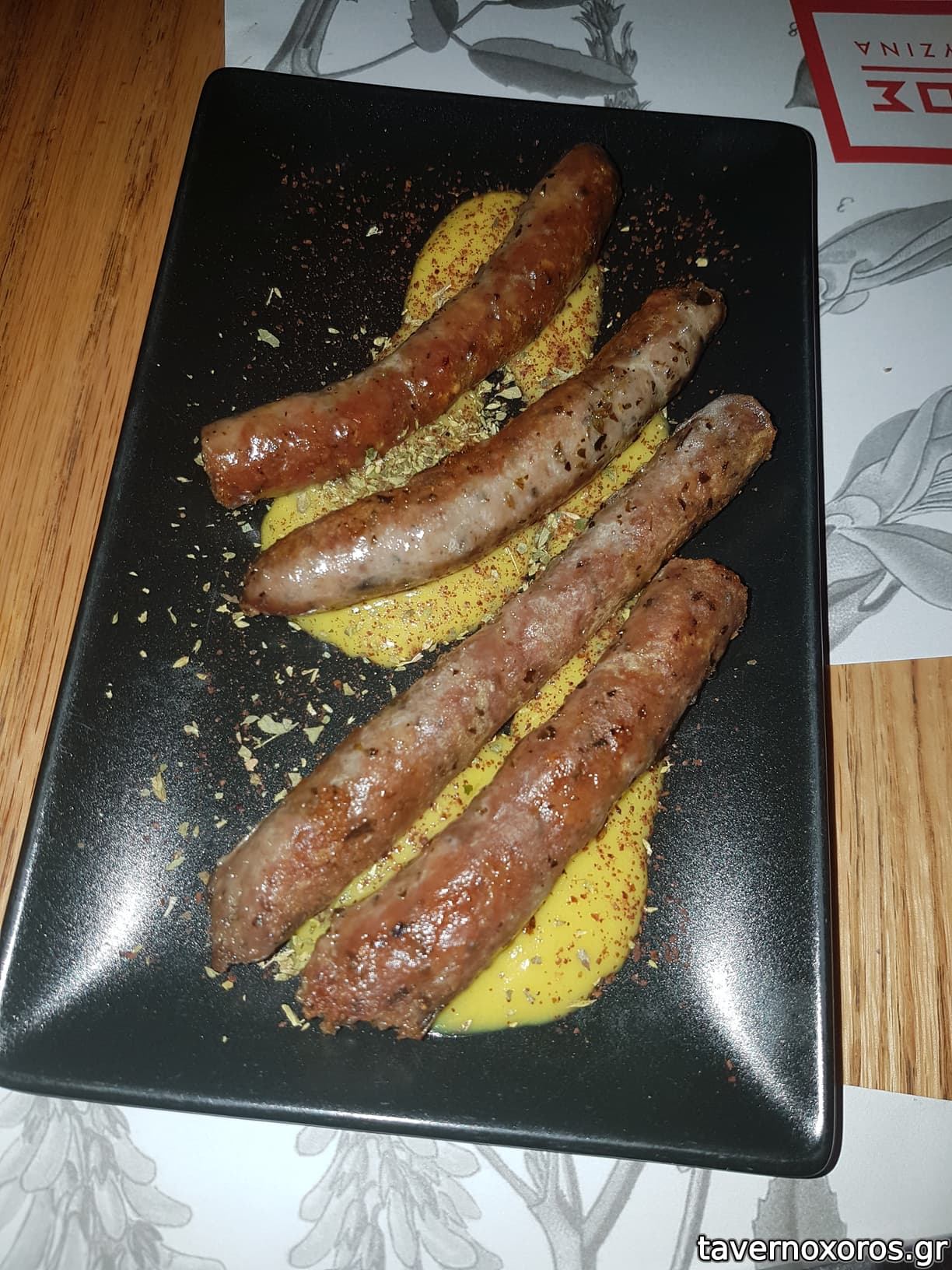 "Φυσικά καπνιστό λουκάνικο Χανίων στη σχάρα. Συνοδεύεται από χειροποίητη σάλτσα μουστάρδας με σινάπι και μπύρα" (απλώς οκ)