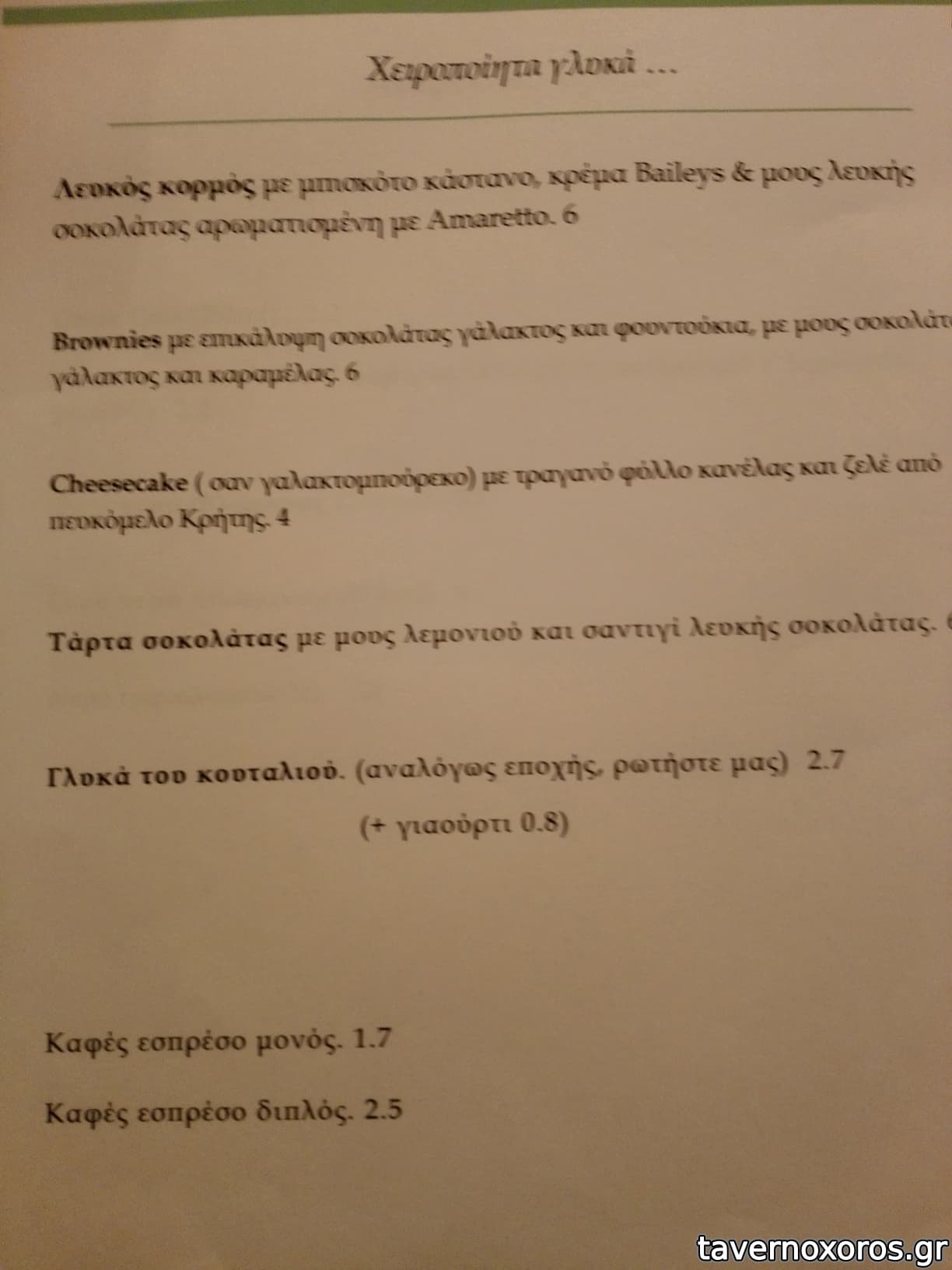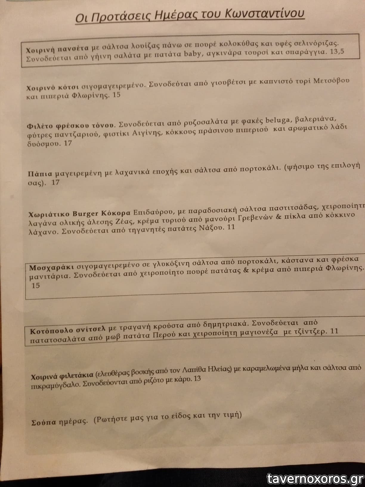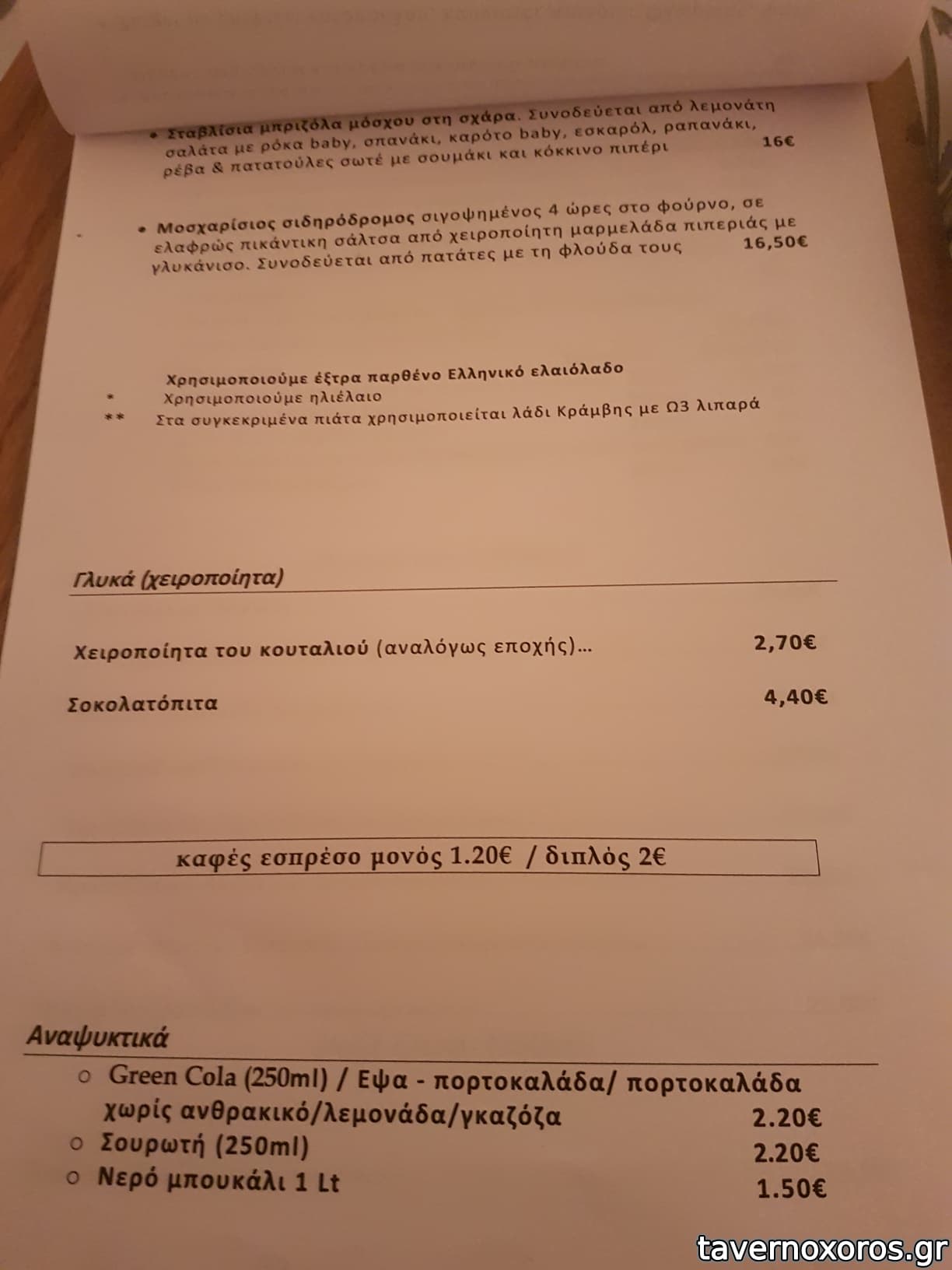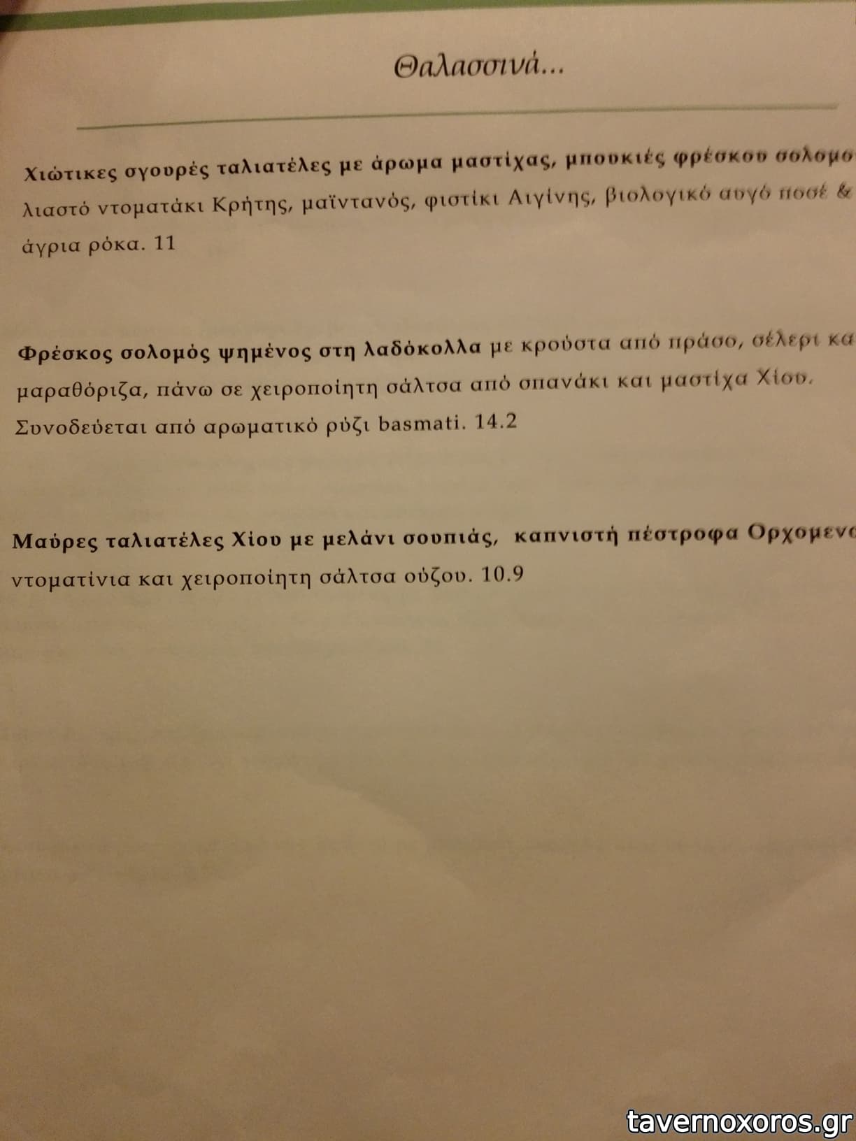 "Μπριζολάκι αγριογούρουνου (bio) Πιερίας σε αρωματική σάλτσα από κυδώνι. Συνοδεύεται από χειροποίητη τυροκαυτερή με φέτα Ελασσόνας (ΠΟΠ) και μαρουλοσαλάτα με φρέσκα μανιτάρια" (το αγιογούρουνο εξαιρετικά, η τυροκαυτερή αδιάφορη)