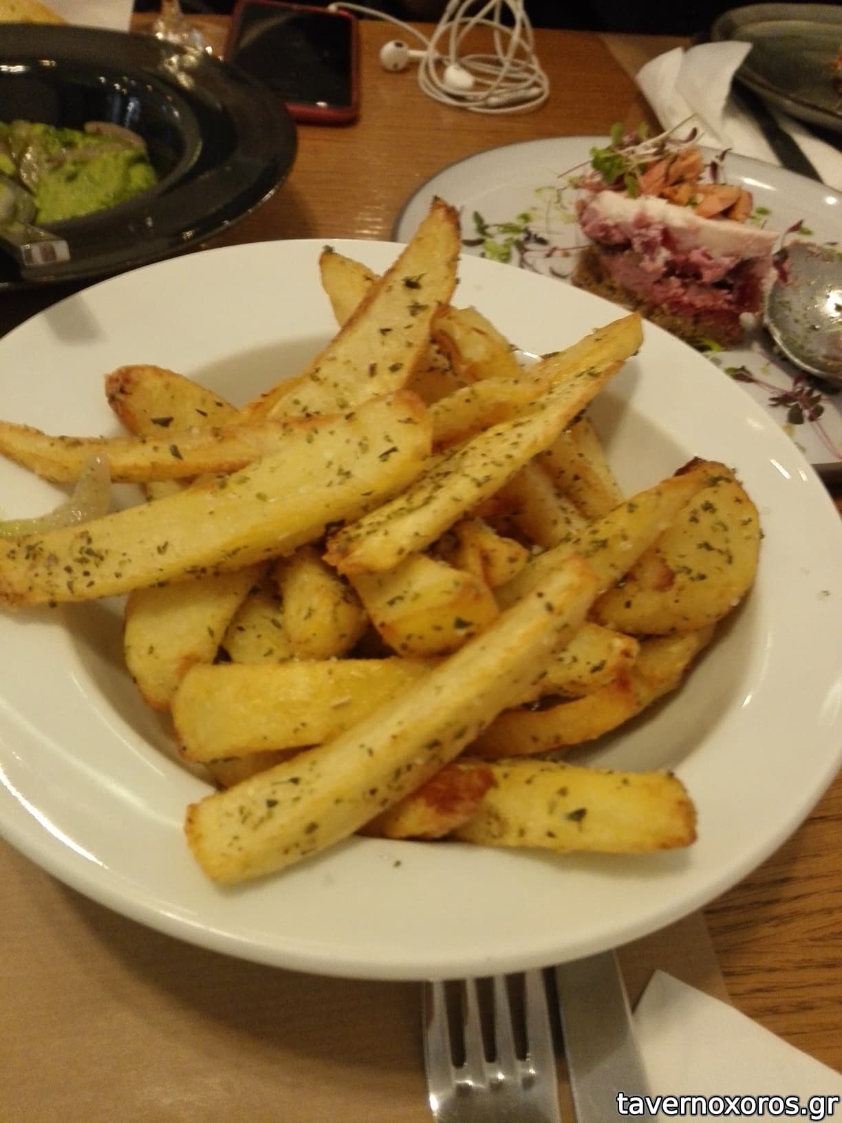 -Πατατες ναξου τηγανητες, λουκουμι.