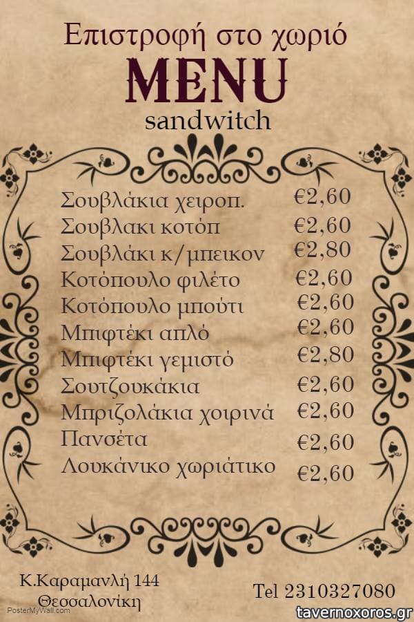 | Λέξεις κλειδιά | #σούβλες, #κεμπάπ, #μπριζόλα σούβλας, #κότσι, #παϊδάκια, #σνίτσελ, #μουσακάς, #παστίτσιο, #παπουτσάκια, #γεμιστά, #σουτζουκάκια σμυρνέικα, #γιουβέτσι, #κοκκινιστό, #μακαρονάδες, #μπακαλιάρος σκορδαλιά, #μυδοπίλαφο, #σουπιές, #σάντουιτς, #σουβλάκια, #σουτζουκάκια, #πανσέτα, #μπιφτέκι, #κοτόπουλο, #λουκάνικο |