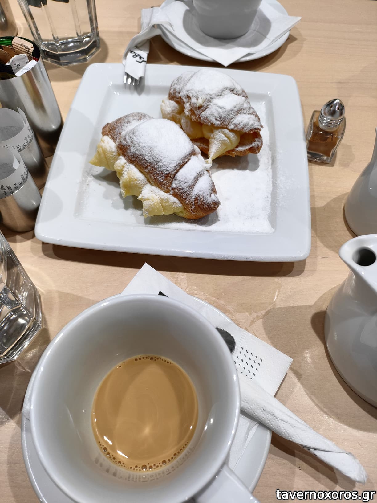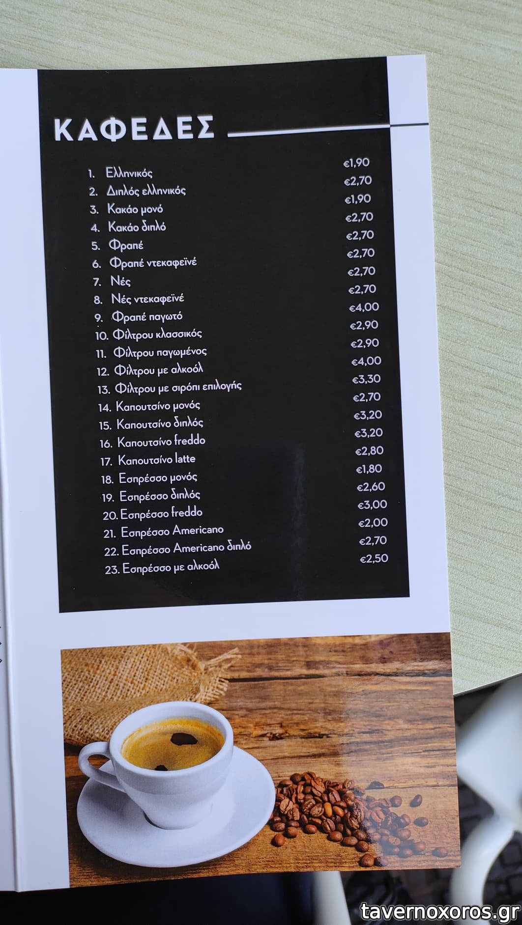 Καπουτσίνο ζεστός -πολύ καλός- προς 2 Ε , Γαλλικός -αρκετά καλός- προς 2,