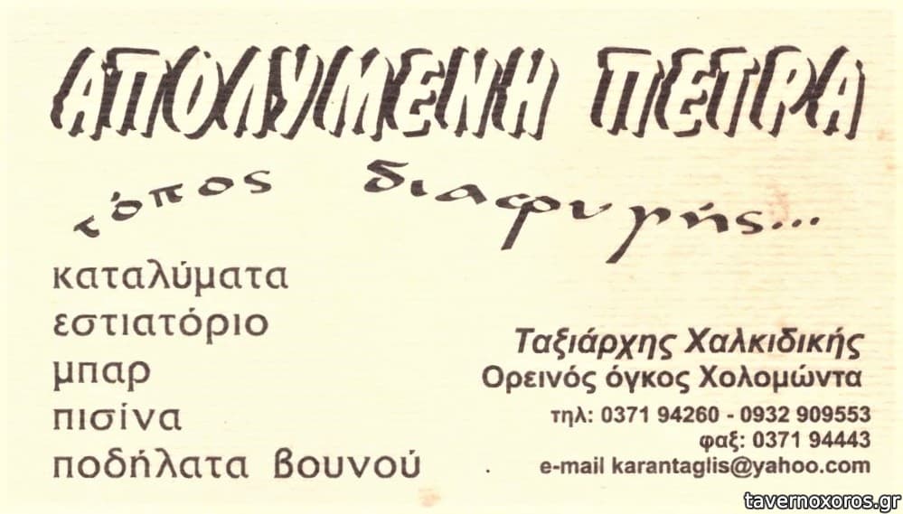 Εξαιρετική τοποθεσία, μέσα στο δάσος. Εντούτοις, το μαγαζί θυμίζει κλασσικό χώρο για οικογενειακές εκδηλώσεις, με γκαζόν, πισίνα κτλ. Ελληνική κουζίνα, με φαγητά της ώρας και κάποια μαγειρευτά.