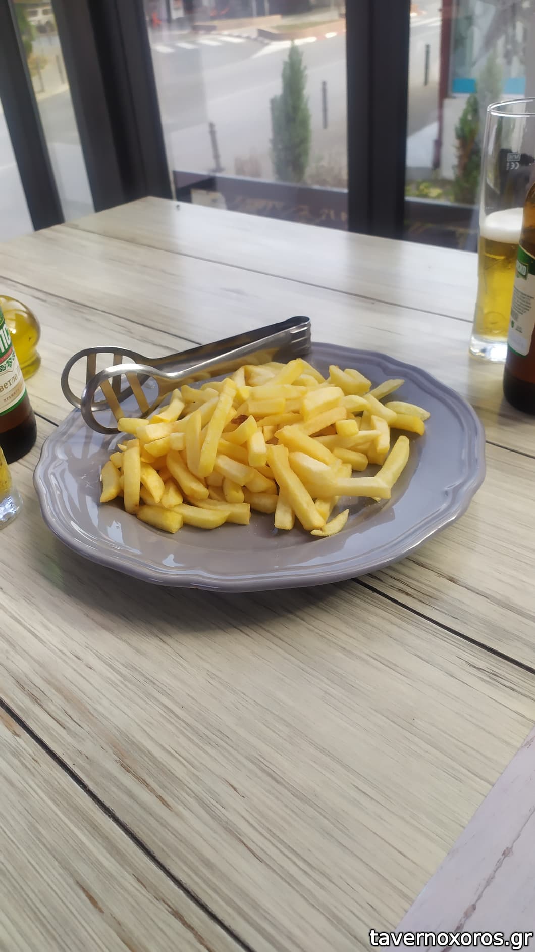 Και τέλος για να κάνουμε την υπερβολή "μπας και δεν χορτάσουμε" και "αντε μωρε τι κοστίζει" πήραμε και μια μερίδα πατάτες (προκατ 1€ της έφεραν σε πιάτο μερίδας!) και ένα πραγματικά αφράτο πεντανόστιμο μπιφτέκι 200γρ= 1,80€ (είχε γαρνιτούρα και άλλες πατάτες).