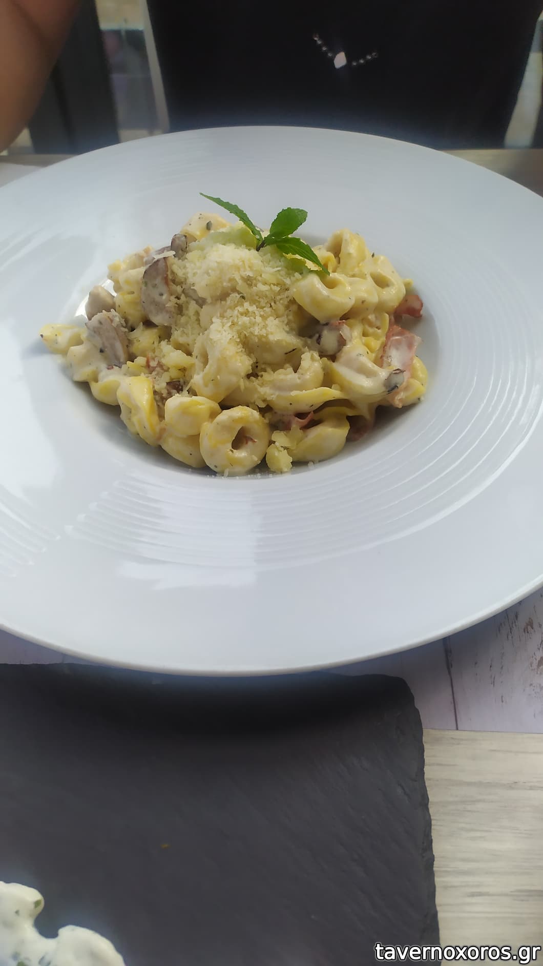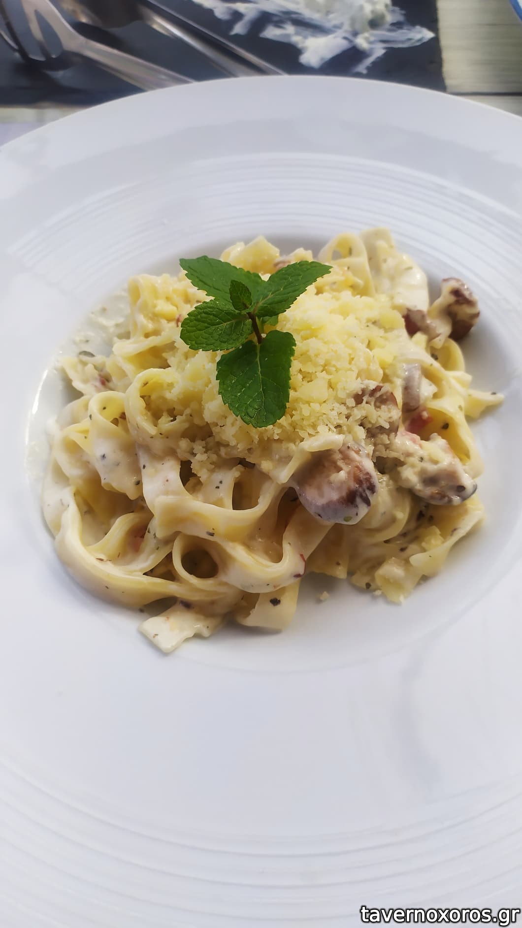 Επιλέξαμε 2 μακαρονάδες (έχεις την δυνατότητα να επιλέξεις απο 5-6 γεύσεις και να διαλέξεις ανάμεσα σε ταλιατέλες, τορτελίνια και πέννες) με άσπρη σάλτσα μανιτάρια και προσούτο η μια και η άλλη είχε και κοτόπουλο.