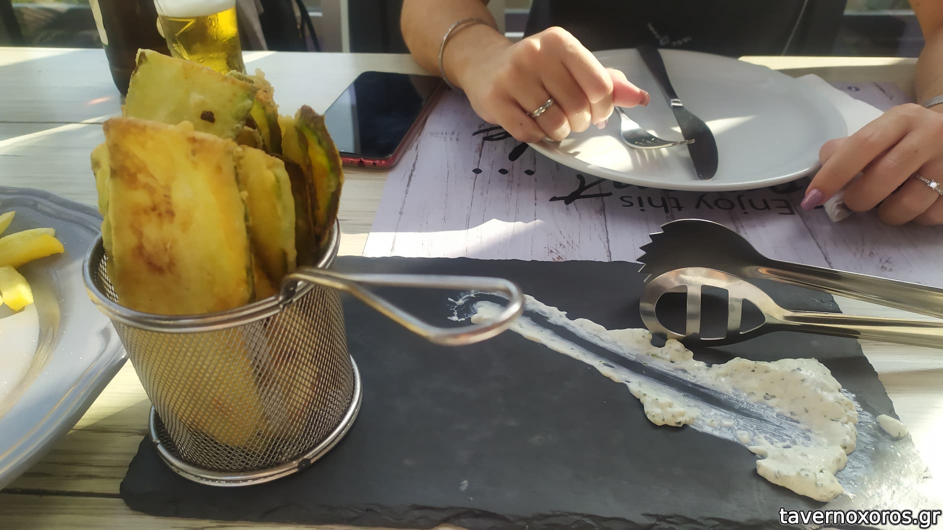 Κολοκυθάκια τηγανιτά (ωραία παρουσίαση) αλλά πολύ λαδερά.