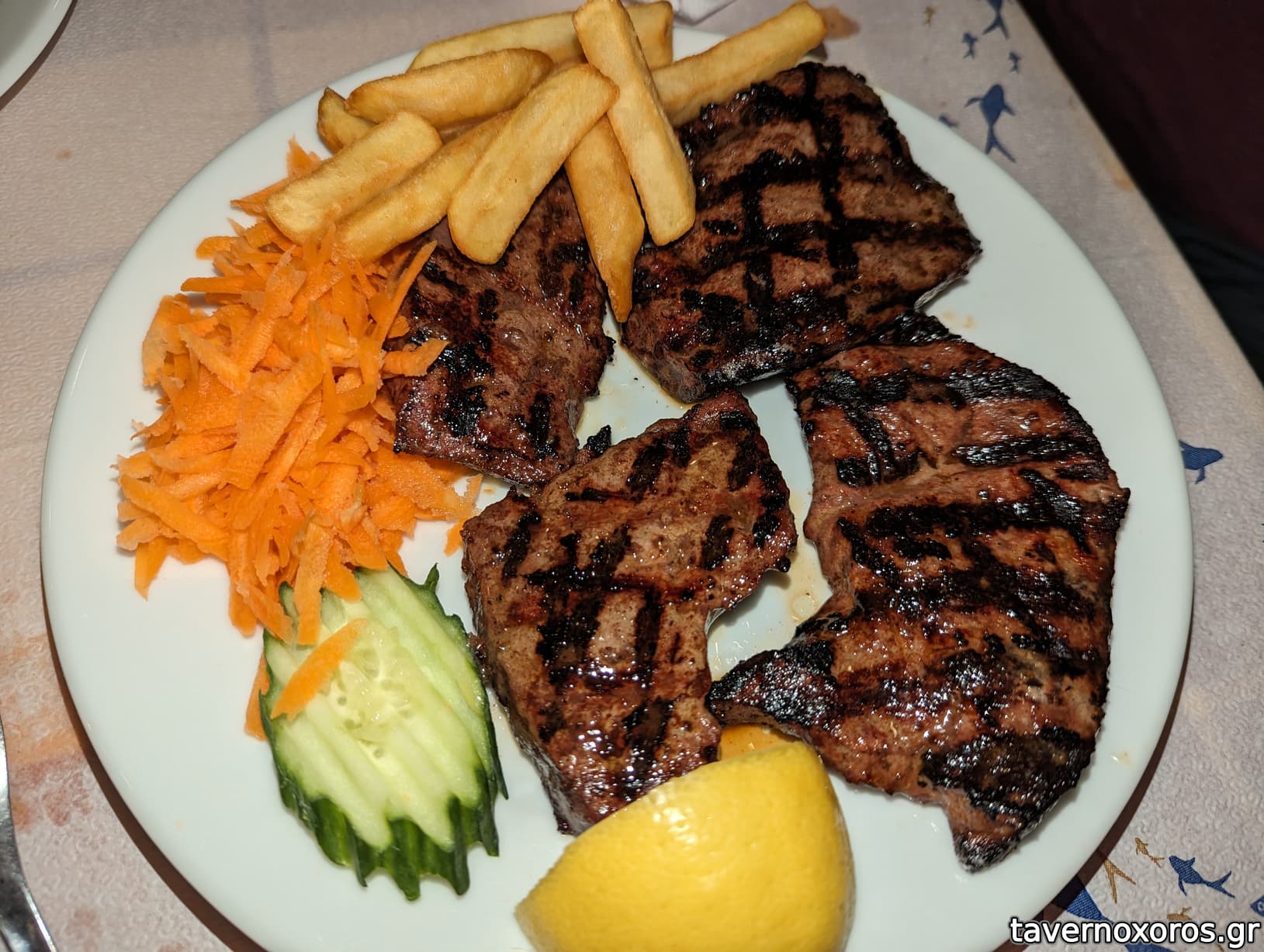 Στα του φαγητού από της ώρας ξεχώρισαν συκώτι, χοιρινή σταβλίσια, μοσχαρίσια μπριζόλα και σουτζουκάκια (πάνω κάτω όπως τα λέει το ταβερνοαλάνι). Σαλάτα βλήτα οκ, αλοιφές και πατάτες αδιάφορες με τις τελευταίες να είναι προτηγανισμένες και να αφήνουν κακή εντύπωση.