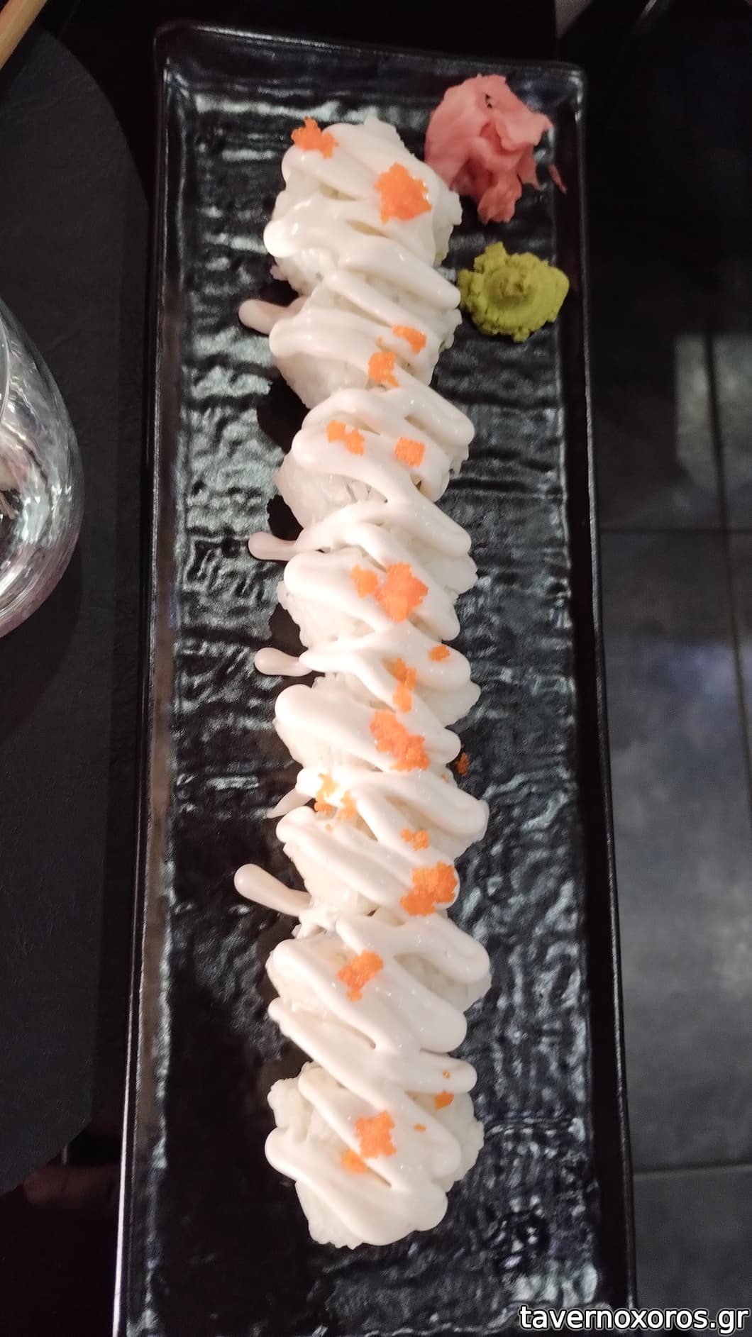 Σέρβις ευγενικό από κάτι κοπελίτσες, αλλά ξεχάσαν τα κρασιά μας και τους τα θυμίσαμε εμείς. Ροζέ 3ε ποτήρι, καλό, γλυκίζον.. Θα ξαναπήγαινα, αλλά έχω ξανατονίσει ότι είμαι ατζαμής στο σούσι.