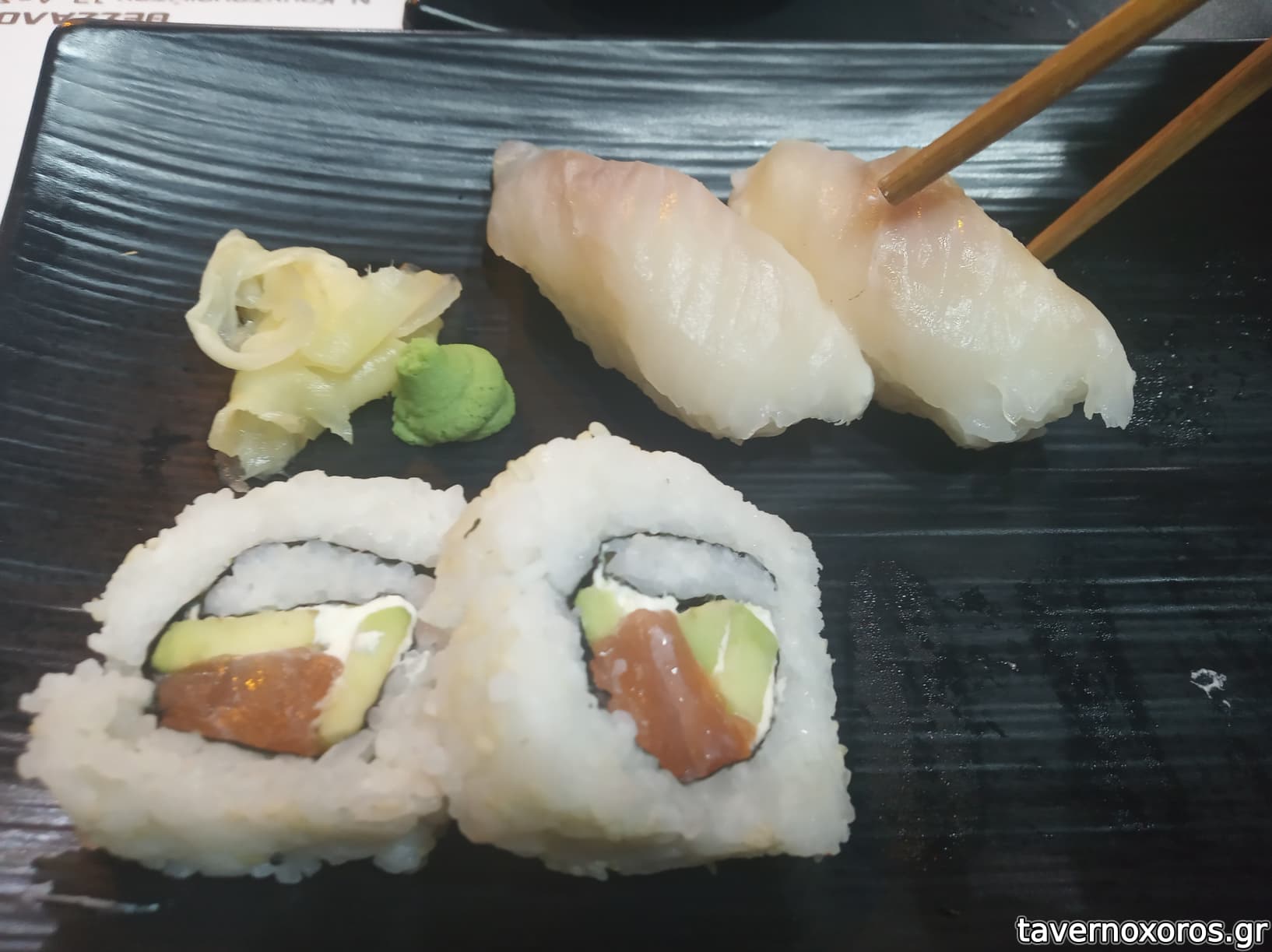 Άργησα να φωτογραφήσω: μπροστά Salmon avocado & πίσω nigiri λαβράκι