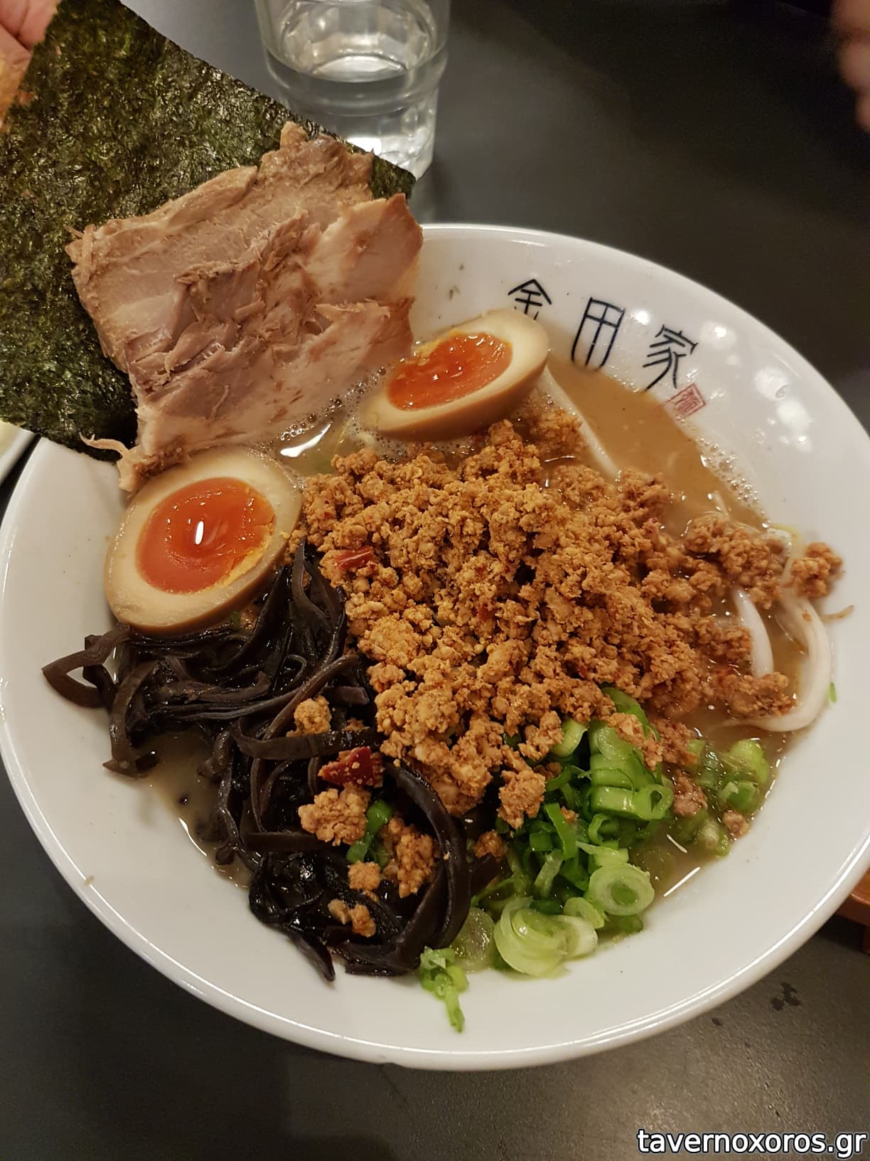 "Gekikara ramen" with hanjuku egg (ο κιμάς και το γεγονός ότι παραήταν καυτερό το κάνουν άκυρο, δε συγκρίνεται με το Tonkotsu)
