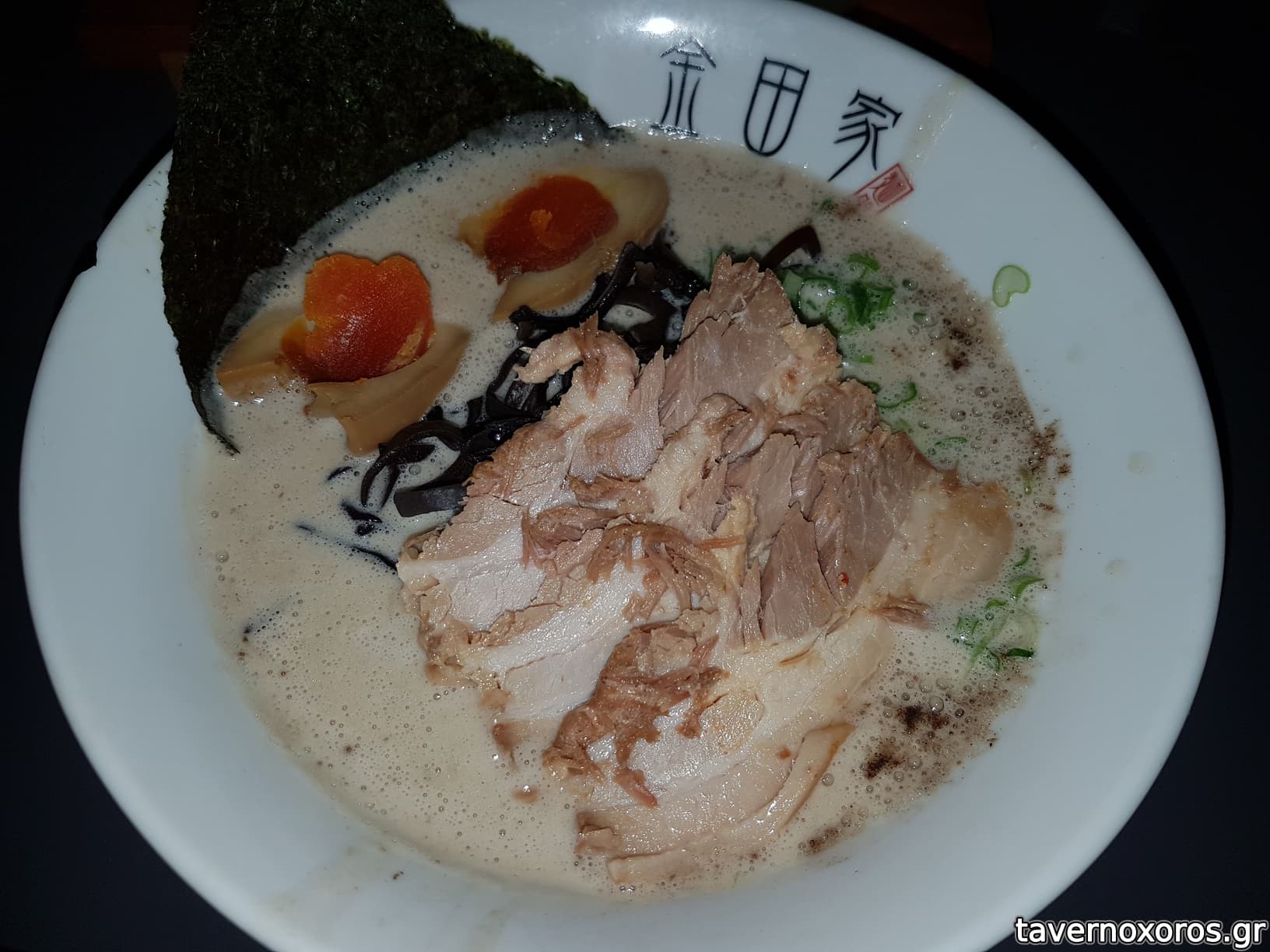 "Tonkotsu ramen" with hanjuku egg (εξαιρετικό, απίστευτο ζουμί, πολύ νόστιμο αυγό, το χοιρινό μια χαρά, τα noodles πιο λεπτά απ' ότι τα προτιμώ)