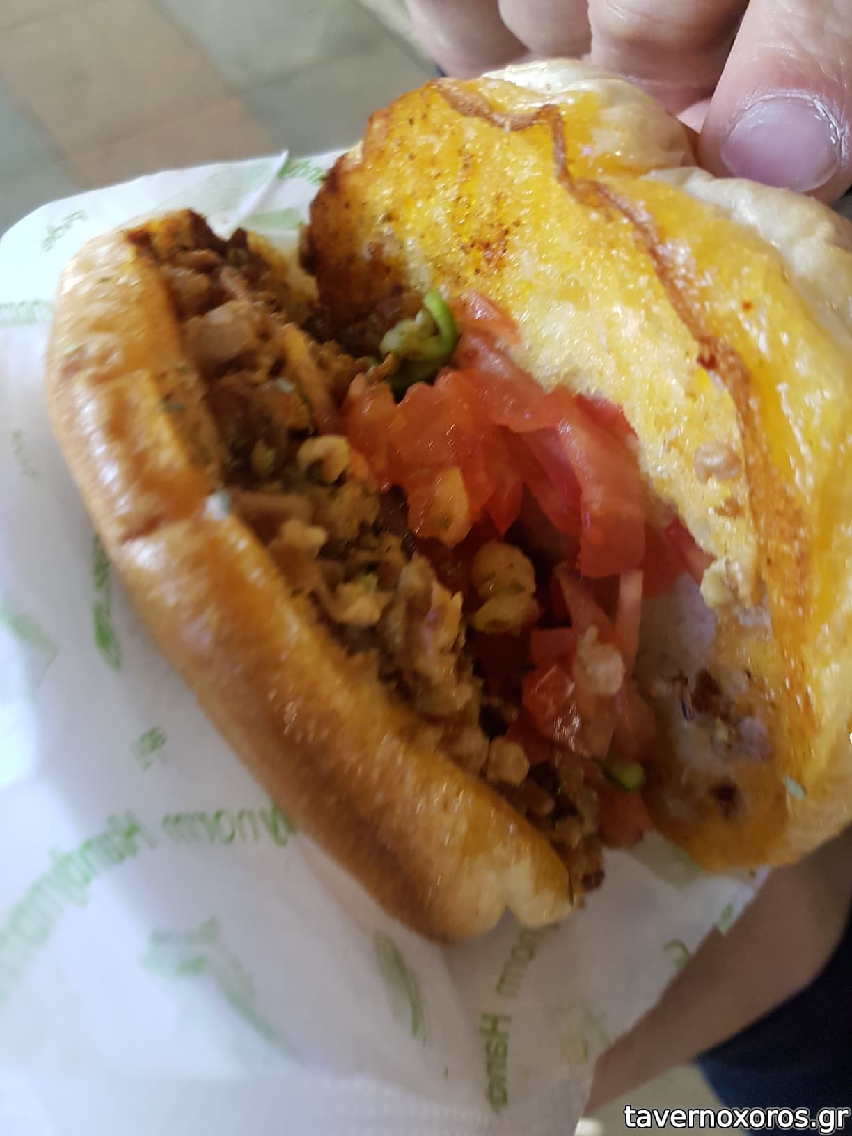 Σάντουιτς με κοκορέτσι (πολύ μέτριο, τίγκα στα λίπη και λάδια με ψωμάκι τύπου burger, αξίζει μόνο μετά από μεγάλο κάψιμο και θέλεις να σβήσεις με βρωμιά)